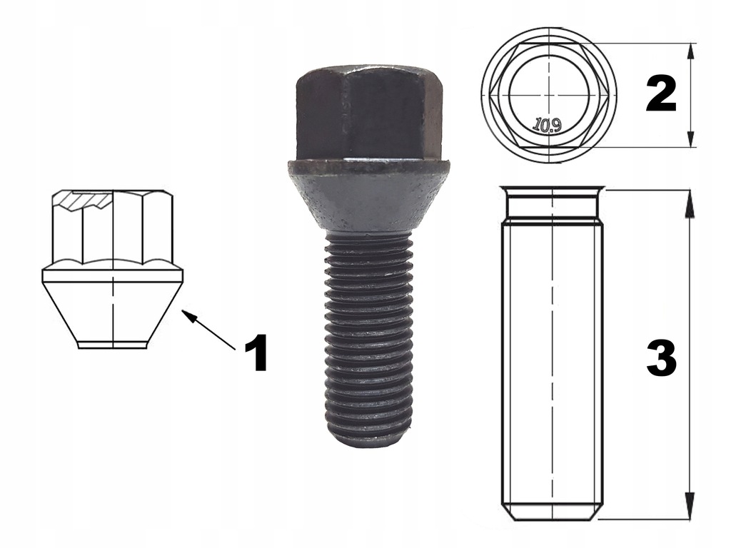 Prezentowane śruby, to precyzyjny i skuteczny system mocowania kół. Stop metalu użyty do ich wykonania, gwarantuje odpowiednią wytrzymałość połączenia gwintowego. Użytkownik może bez obaw zamocować koło, stosując zalecaną przez producenta pojazdu siłę przy ich dokręcaniu (Nm). Śruba zapewnia także pewne osadzenie klucza w trakcie dokręcania lub odkręcania.