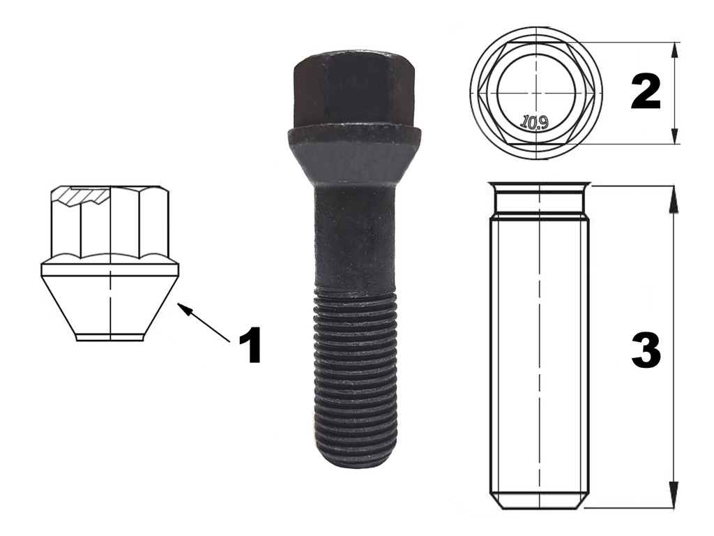 Prezentowane śruby, to precyzyjny i skuteczny system mocowania kół. Stop metalu użyty do ich wykonania, gwarantuje odpowiednią wytrzymałość połączenia gwintowego. Użytkownik może bez obaw zamocować koło, stosując zalecaną przez producenta pojazdu siłę przy ich dokręcaniu (Nm). Śruba zapewnia także pewne osadzenie klucza w trakcie dokręcania lub odkręcania.
