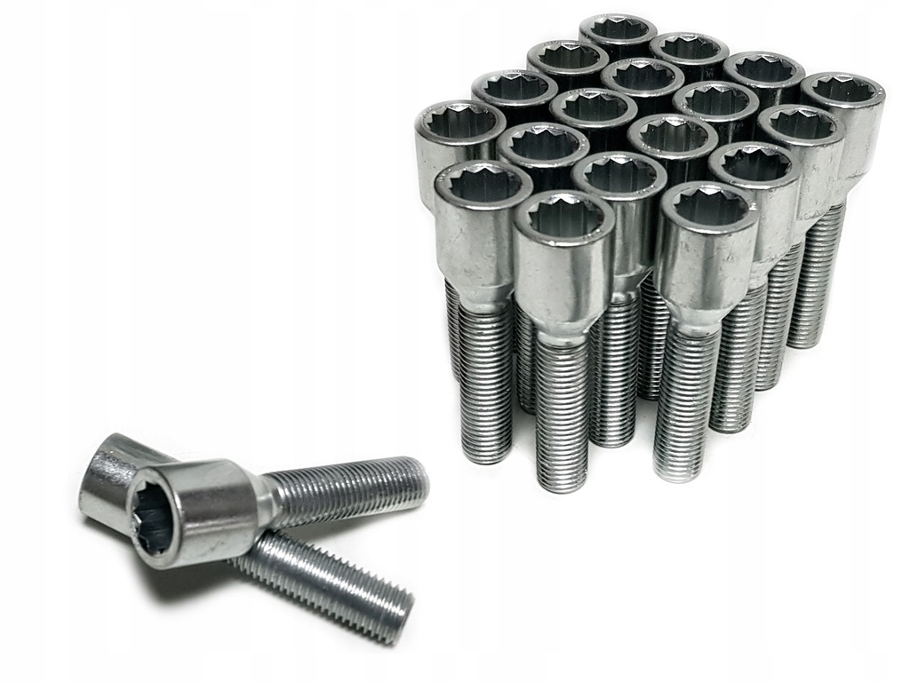 Prezentowane śruby, to precyzyjny i skuteczny system mocowania kół. Stop metalu użyty do ich wykonania, gwarantuje odpowiednią wytrzymałość połączenia gwintowego. Użytkownik może bez obaw zamocować koło, stosując zalecaną przez producenta pojazdu siłę przy ich dokręcaniu (Nm). Śruba zapewnia także pewne osadzenie klucza w trakcie dokręcania lub odkręcania.