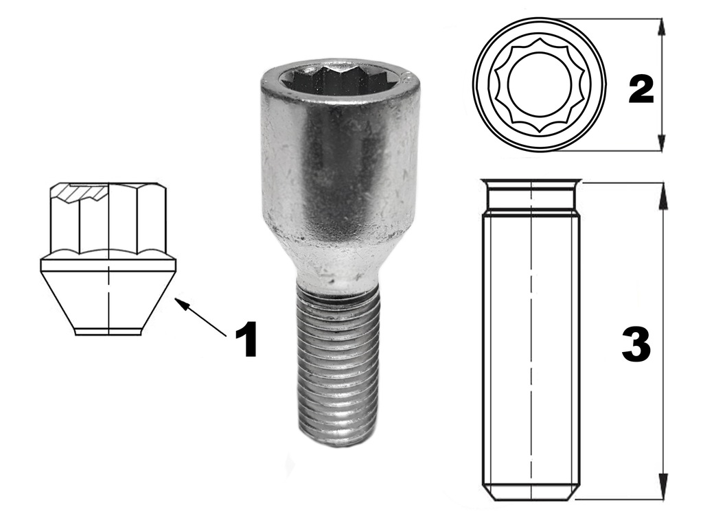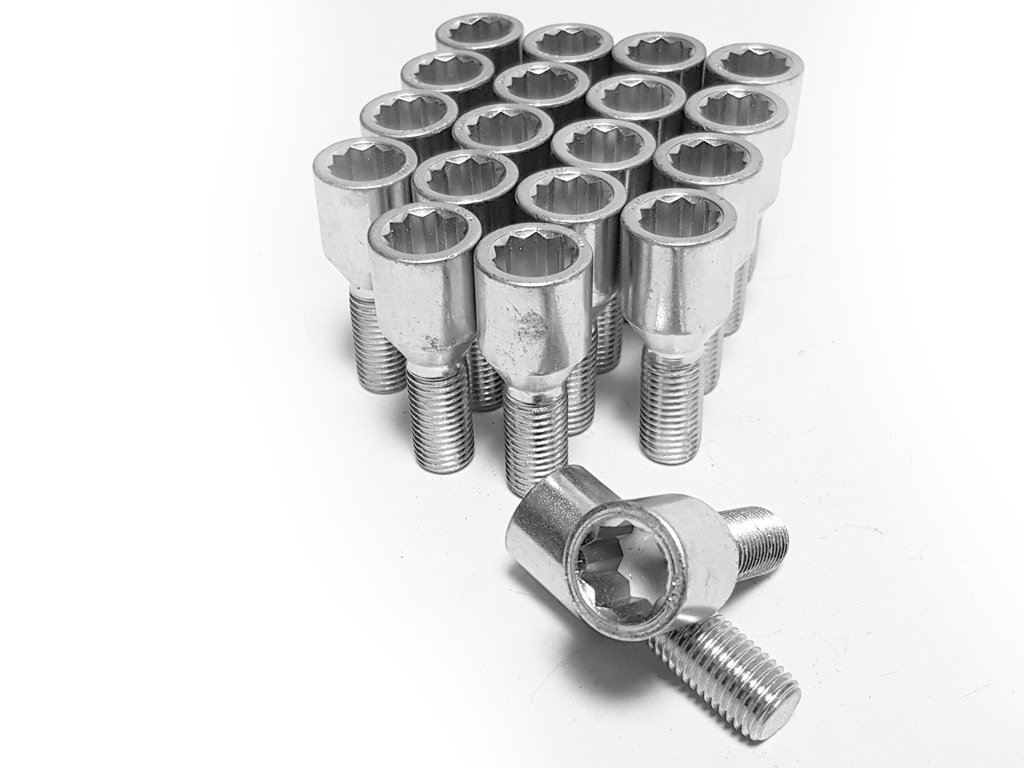 Prezentowane śruby, to precyzyjny i skuteczny system mocowania kół. Stop metalu użyty do ich wykonania, gwarantuje odpowiednią wytrzymałość połączenia gwintowego. Użytkownik może bez obaw zamocować koło, stosując zalecaną przez producenta pojazdu siłę przy ich dokręcaniu (Nm). Śruba zapewnia także pewne osadzenie klucza w trakcie dokręcania lub odkręcania.