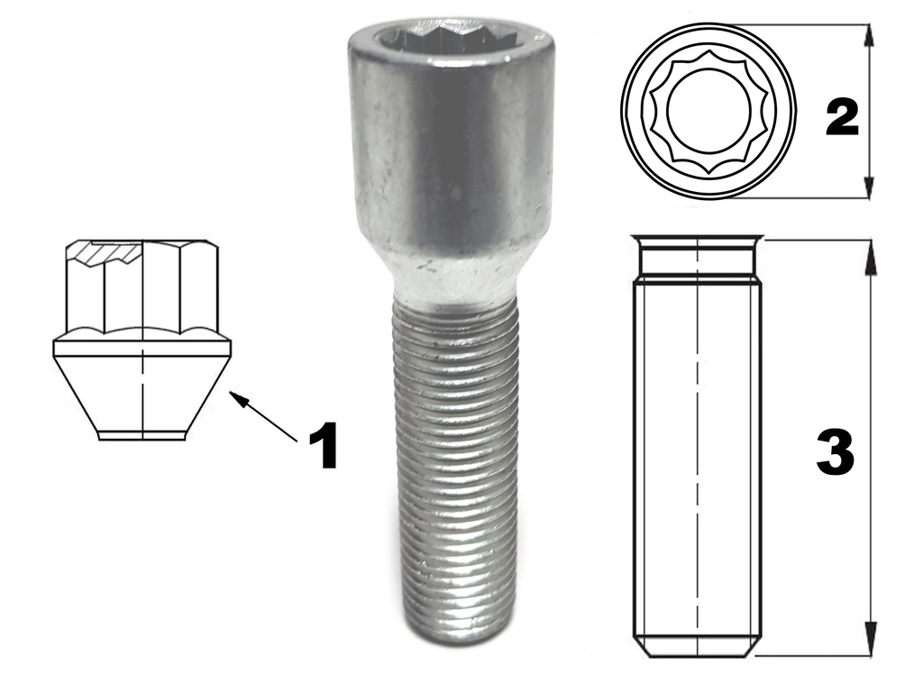 Prezentowane śruby, to precyzyjny i skuteczny system mocowania kół. Stop metalu użyty do ich wykonania, gwarantuje odpowiednią wytrzymałość połączenia gwintowego. Użytkownik może bez obaw zamocować koło, stosując zalecaną przez producenta pojazdu siłę przy ich dokręcaniu (Nm). Śruba zapewnia także pewne osadzenie klucza w trakcie dokręcania lub odkręcania.