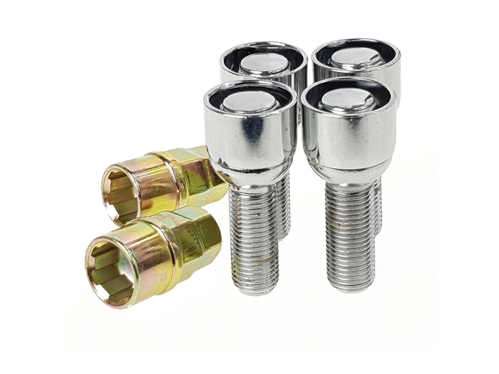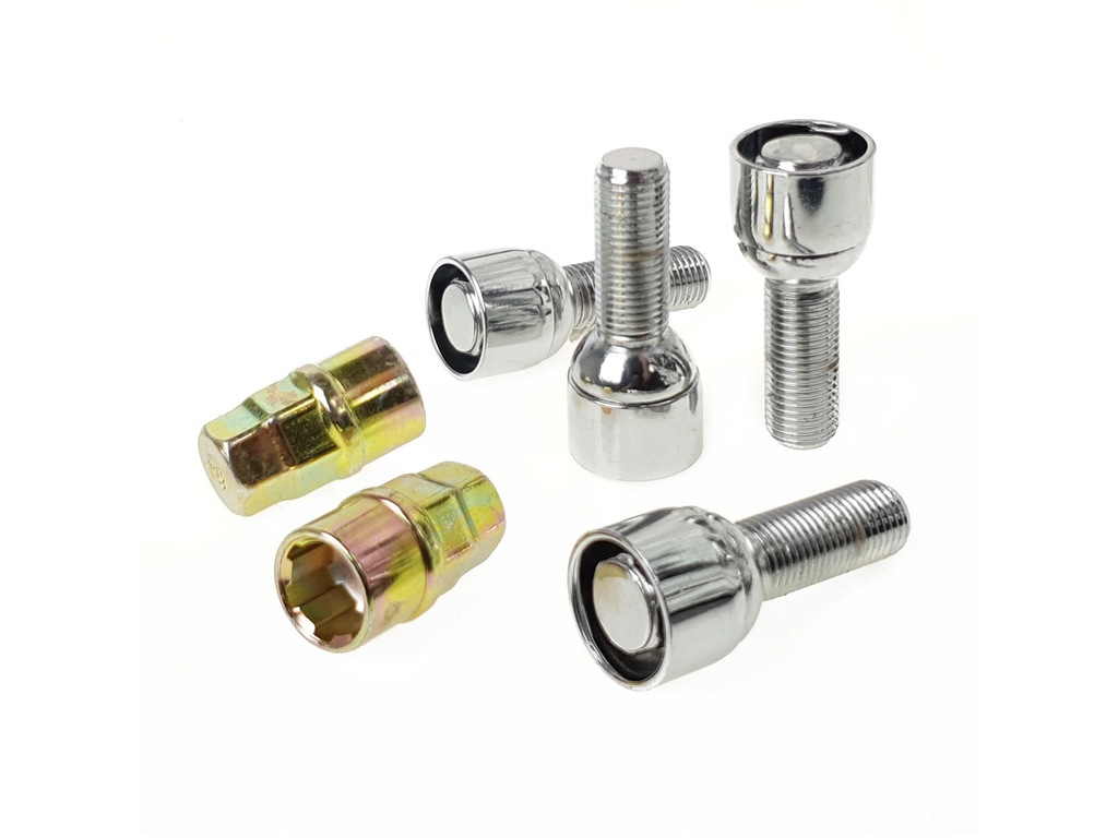 Prezentowane śruby, to precyzyjny i skuteczny system zabezpieczenia kół przed kradzieżą idealnie pasujące do oryginalnych felg aluminiowych. Unikalny wzór zabezpieczenia, wymaga stosowania dedykowanego klucza. Bez jego użycia, nie ma możliwości pokonania zabezpieczenia. Przed próbą nabicia nieoryginalnego klucza, chroni ruchoma, obrotowa tuleja wokół wzoru. Ruchoma tuleja zabezpiecza również felgę, podczas odkręcania i przykręcania koła. Do wykonania śrub użyto wysokogatunkowego stopu stali. Na tle konkurencji zestaw wyróżnia to, iż w standardzie użytkownik otrzymuje 2 klucze. To niezmiernie ważne, np. w przypadku zagubienia jednego z nich.