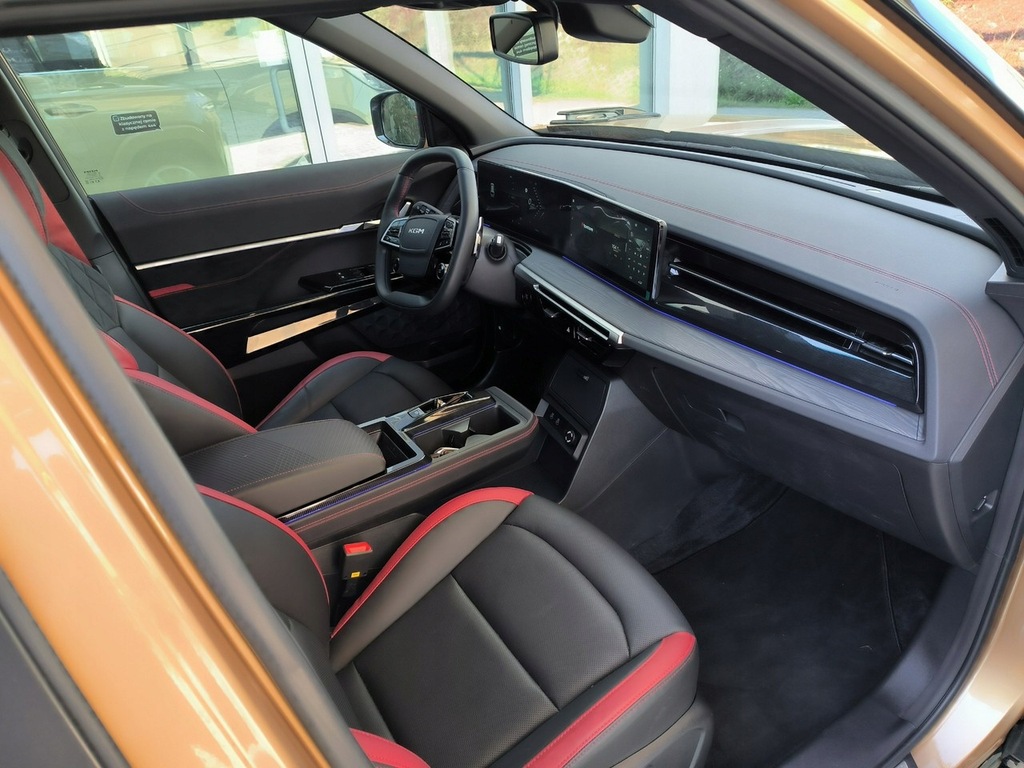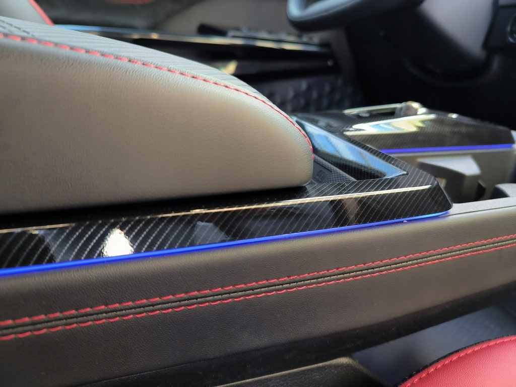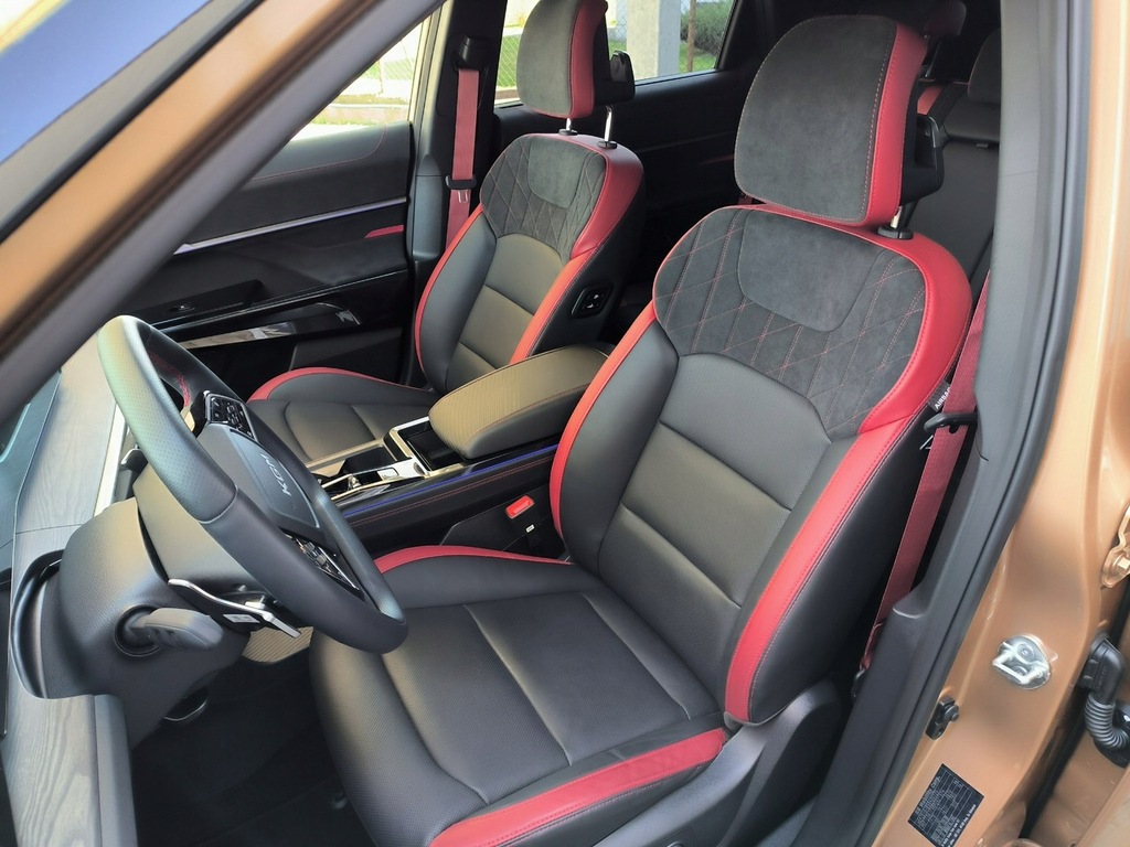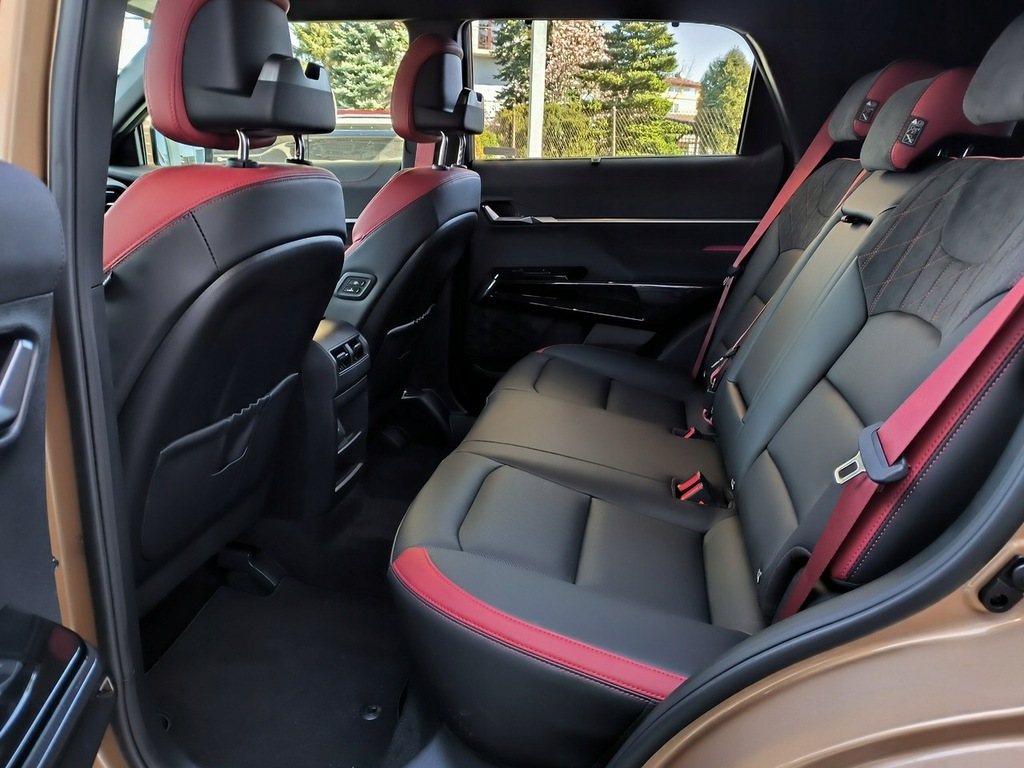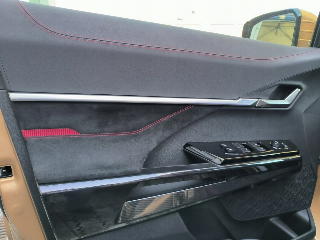 - Tapicerka skórzana w kolorze czarnym ze wstawkami w kolorze czerwonym