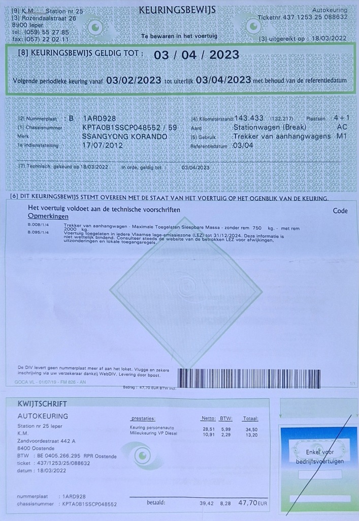 - sprawdzenie na stacji diagnostycznej wybranej przez Klienta