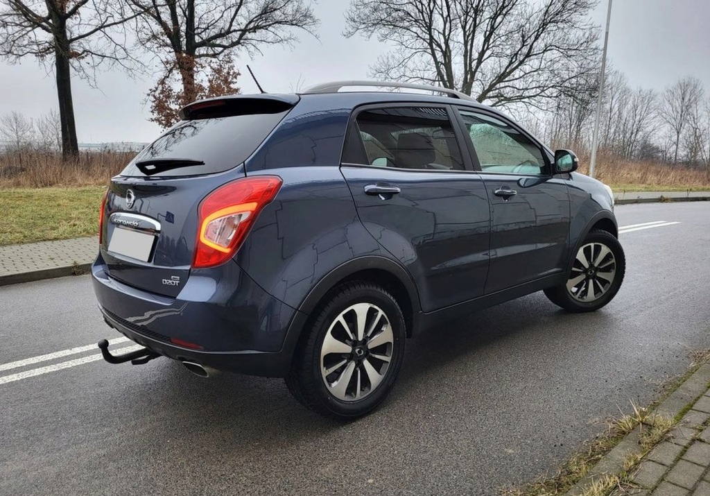 SsangYong Korando w wersji poliftowej z 2014 roku wyposażony jest w niezawodny i niedrogi w utrzymaniu silnik diesla 2.0 o mocy 150KM, który pracuje równo i cicho. Jednostka napędowa znana ze swojego małego apetytu na paliwo, bezawaryjności oraz tanich i ogólnodostępnych części. Zawieszenie oraz pozostała reszta podzespołów są w nienagannej kondycji i pracują bez zarzutu. Automatyczna klimatyzacja w pełni sprawna, potrafi w ciągu kilku minut schłodzić wnętrze auta. Korando zadbane zewnątrz jak i wewnątrz, niepoprzecierana tapicerka a karoseria bez nadmiernych rys lub obcierek. Samochód na bieżąco serwisowany i doinwestowywany. Pojazd jest w bardzo dobrym stanie technicznym i wizualnym. SsangYong jest gotowy do dalszej eksploatacji bez najmniejszych wkładów finansowych. Więcej niezbędnych informacji udzielę telefonicznie. Zapraszam na oględziny auta oraz jazdę próbną.