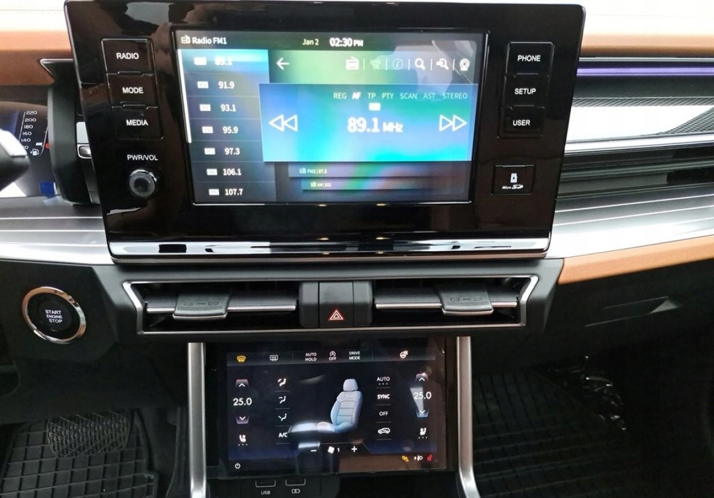 LED-owe reflektory przednieLED-owe światła do jazdy dziennej oraz kierunkowskazy przednieLED-owe tylne światła przeciwmgielneLED-owe światła stopuLED-owe oświetlenie wnętrzaKierownica pokryta skórąKierownica regulowana w dwóch płaszczyznachFotel kierowcy z regulacją wysokoścKanapa tylna dzielona w proporcji 40 : 60Kieszenie w oparciach przednich foteliRoleta bagażnikaZderzaki w kolorze nadwoziaKlamki w kolorze nadwoziaLusterka zewnętrzne w kolorze nadwoziaLusterka zewnętrzne elektrycznie sterowane, składane i podgrzewane z kierunkowskazamiRelingi dachoweLED-owe przednie światła przeciwmgielneTapicerka ze skóry ekologicznej TPU i wnętrze w kolorze brązowymFotele przednie podgrzewaneKierownica z manetkami sterującymi skrzynią biegówWykończenie wnętrza w kolorach: Brązowy lub Khaki (do wyboru)Fotel kierowcy regulowany elektrycznieFotel kierowcy z regulacją odcinka lędźwiowegoFotele przednie wentylowaneFotele tylne podgrzewaneTECHNOLOGIA I SPRZĘT AUDIO