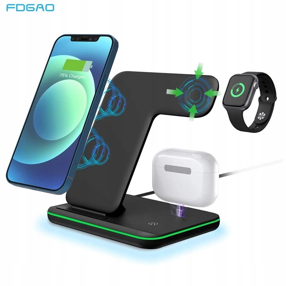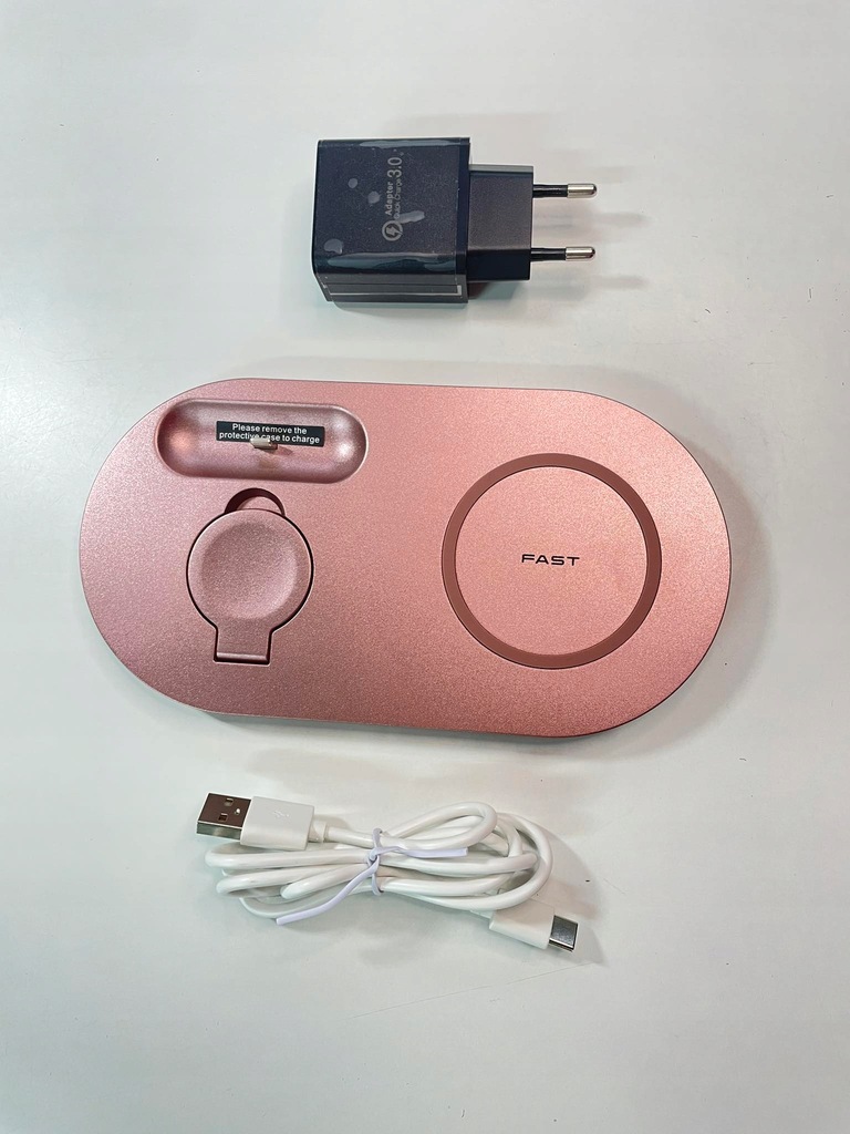 - Maksymalna moc ładowania 19,5W (15W w miejscu ładowania telefonu, 2,5W w miejscu ładowania zegarka oraz 2W w miejscu wtyku Lightning/micro USB)