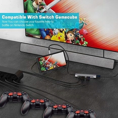 Działa z adapterem kontrolera Gamecube Działa idealnie z Twoją konsolą Switch, która zawiera adapter Gamecube do rozbijania. Wystarczy podłączyć adapter Gamecube do 2 portów USB. Teraz możesz wybrać swojego ulubionego bohatera do walki na Nintendo Switch.