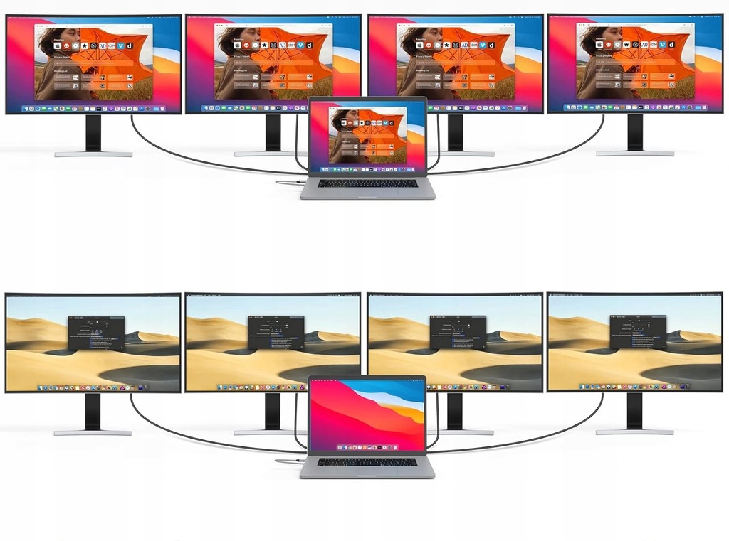 WIODĄCA TECHNOLOGIA: Otrzymasz inteligentną stację dokującą USB C, która doskonale łączy w sobie funkcje koncentratora USB C i stacji dokującej, z wbudowanym zaawansowanym chipem. Nasze stacje dokujące obejmują potrójny lub cztery wyświetlacze, lekkie i przenośne, wydajne, wieloportowe realizacje wielu wyświetlaczy (tryb lustrzany/tryb rozszerzony/tryb ściany wideo), na nowo definiując stację dokującą do laptopa.