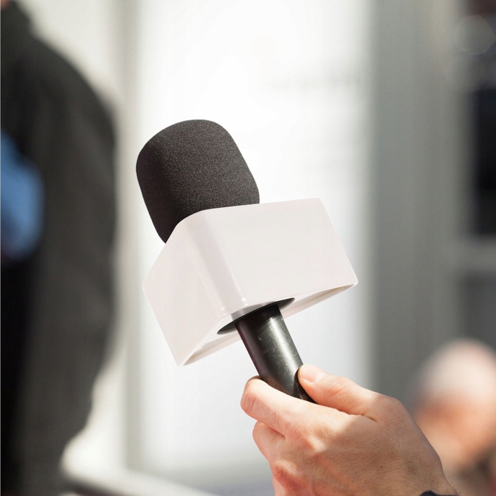 ✅1 * Portable ABS Injection Molding Triangular Shaped Interview Mic Microphone Logo Flag Station Logo (White)