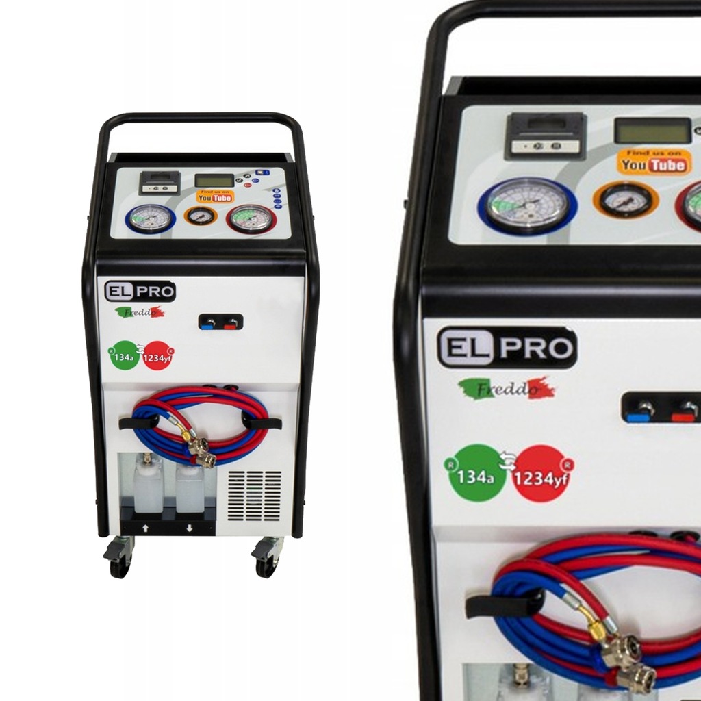 - Napełnianie czynnikiem- urządzenie napełnia układ czynnikiem, po tym etapie mamy możliwość sprawdzenia ciśnienia na manometrach oraz wydruk raportu.