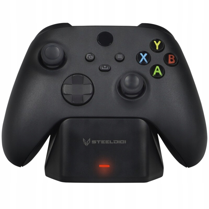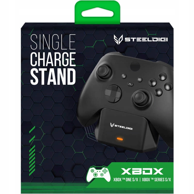 Pojedyncza stacja ładująca SteelDigi Single Charge Stand JADE TOTEM do pada konsoli XBOX ONE X/S, XBOX Series X/S z akumulatorem 1200 mAh, w czarnym kolorzePodstawka pod kontroler z funkcją ładowania jest kompatybilna z padem do konsoli XBOX One, Xbox One X/S, XBOX serii X/S. Posiada kształt idealnie dopasowany do kontrolera, a antypoślizgowy spód zapobiega jej przesuwaniu się. Single Charge Stand SteelDigi jest prosty i bezpieczny w użyciu - wystarczy położyć kontroler z zamontowanym akumulatorkiem, aby naładować pada. Stacja ładująca SteelDigi została wyposażona w diodę informującą o statusie ładowania oraz zabezpieczenie przed przegrzaniem.