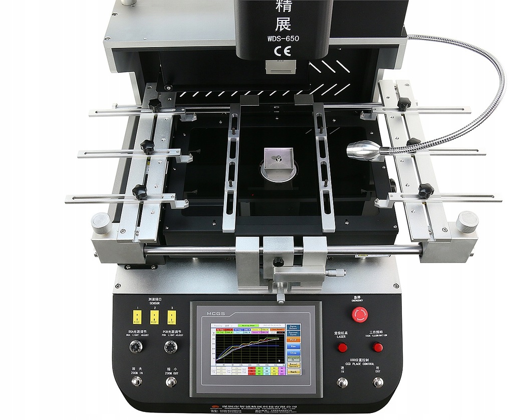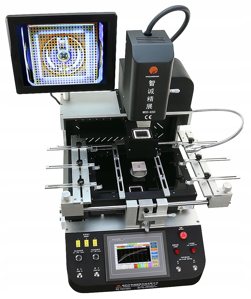 Zintegrowany system naprawy i wymiany układów WISDOMSHOW WDS-650 o łącznej mocy 6500W to bardzo wydajne, profesjonalne i nowoczesne rozwiązanie do demontażu i montażu układów BGA, uBGA, CBGA, CCGA, CSP, QFN, MLF, PGA dla serwisów elektroniki użytkowej, medycznej, telekomunikacyjnej, wojskowej, samochodowej i przemysłowej.