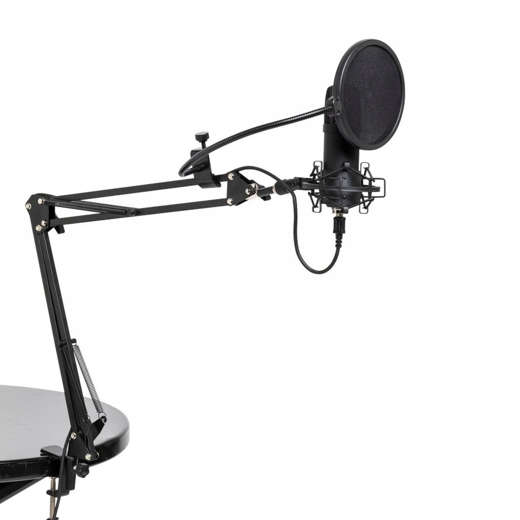 Dodatkowo w tej cenie otrzymasz statyw biurkowy (wysięgnik), pop filtr, przewód usb, który jest ukryty w wysięgniku biurkowym oraz wysokiej jakości kosz przeciwwstrząsowy!