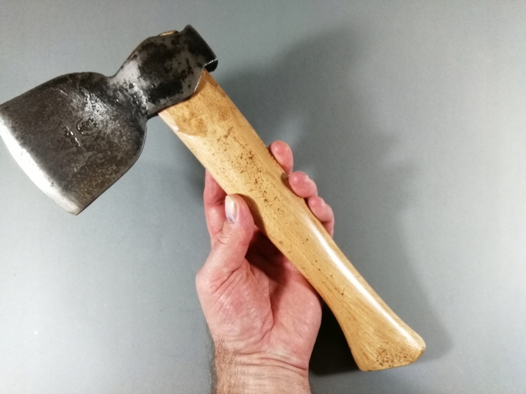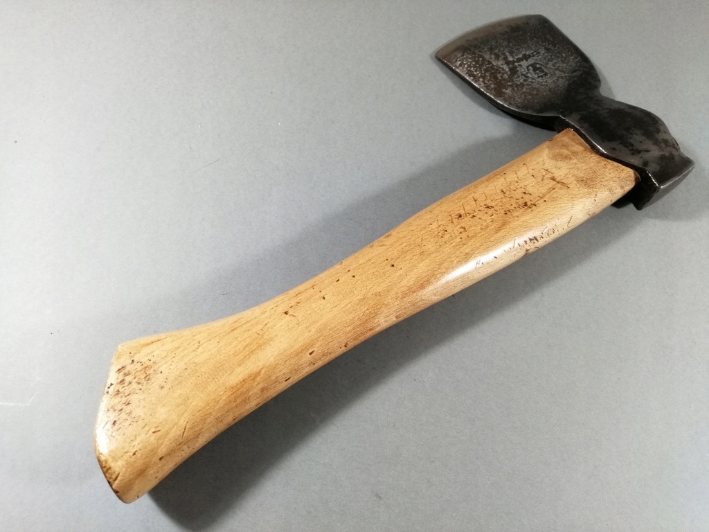 Stan bardzo dobry wszystko w porządku, drewniana rączka cała bez pęknięć, obuch trzyma się dobrze żadnych luzów, siekiera lekka na jedną rękę, krztałt KENT PATTERN, sygnatura to SJ ENGLAND, SPEAR & JACKSON. Waga z trzonkiem 550 g. Pochodzenie Anglia.