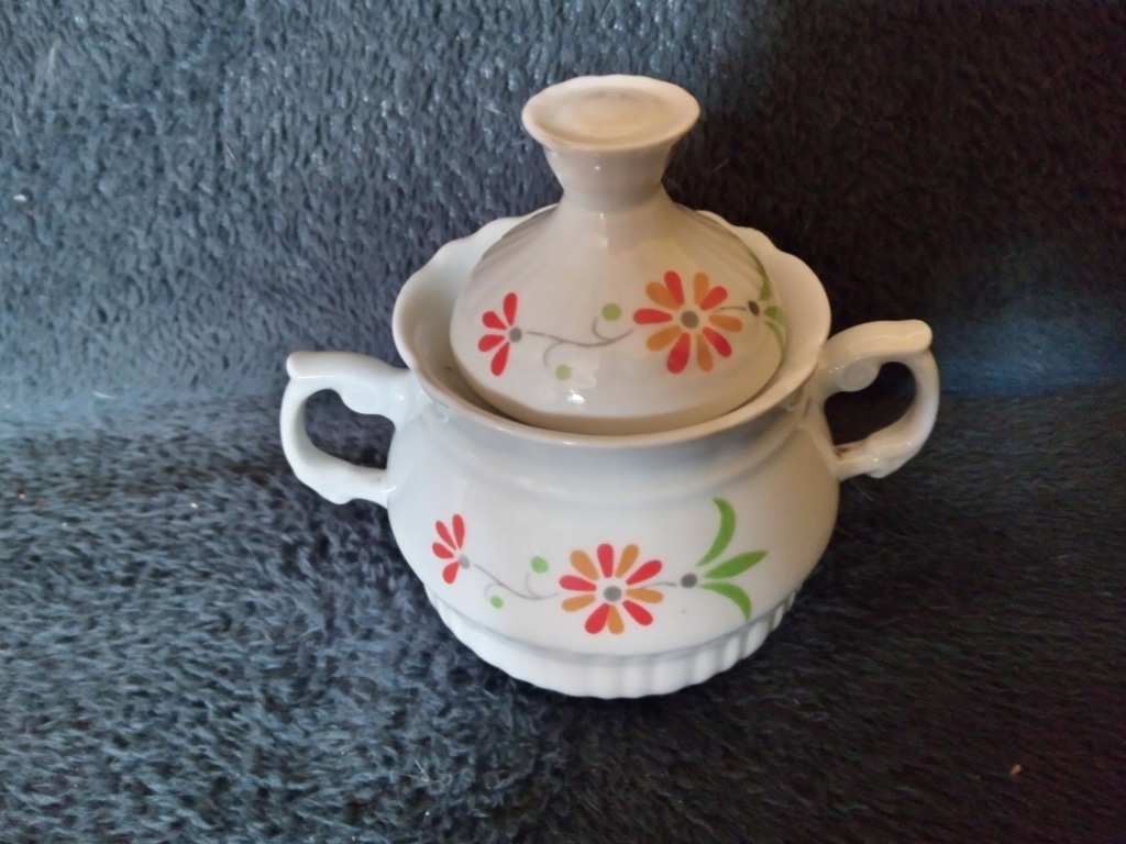 Stara cukiernica porcelanowa WŁOCŁAWEK widoczna na zdjęciach. Wysokość 11 cm.