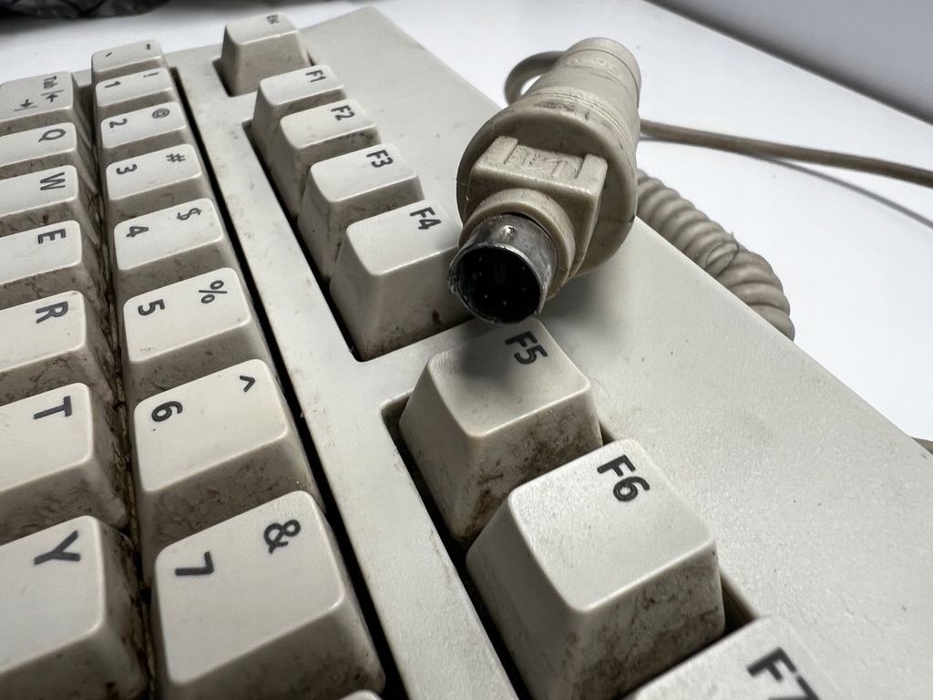 Klawiatura w stanie nieznanym, wtyczka 5 dnin z przejściówką. Brak możliwości sprawdzenia klawiatury, stan wizualny dobry jak na zdjęciach, w zestawie przejściówka.