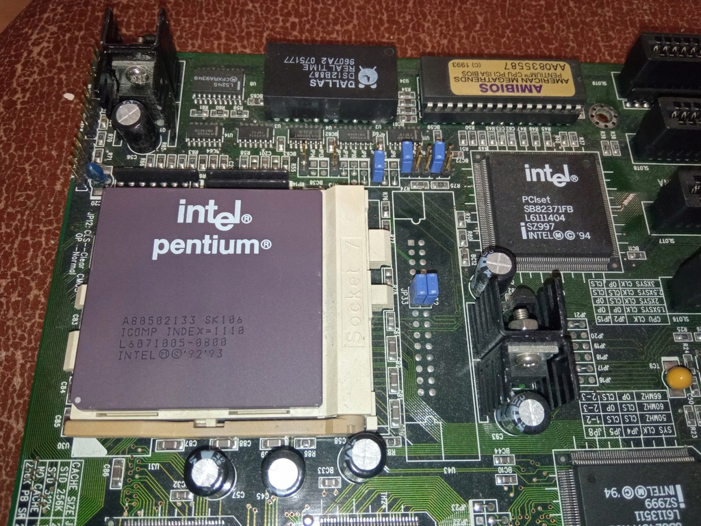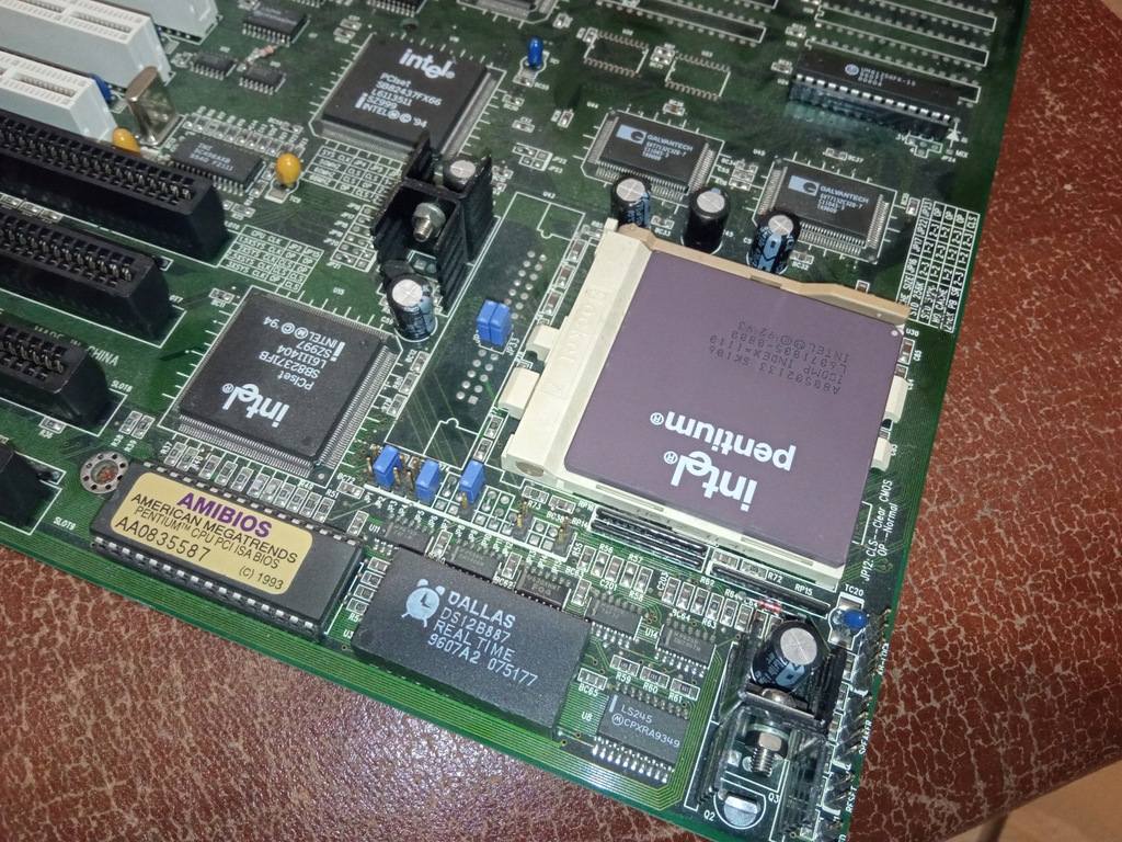 Starą płytę główną z procesorem Pentium 133 + ram, stan wizualny i kompletność jak na zdjęciach, podpięta do sprawdzenia, działa, da się wejść do biosu, więcej niesprawdzone.