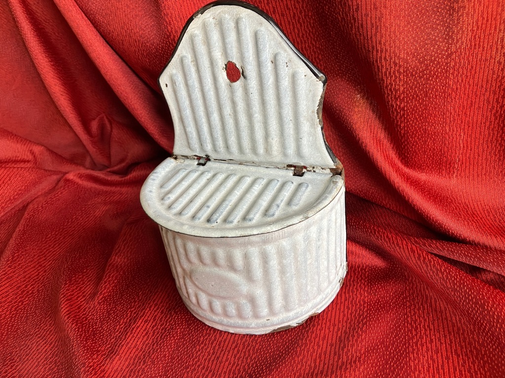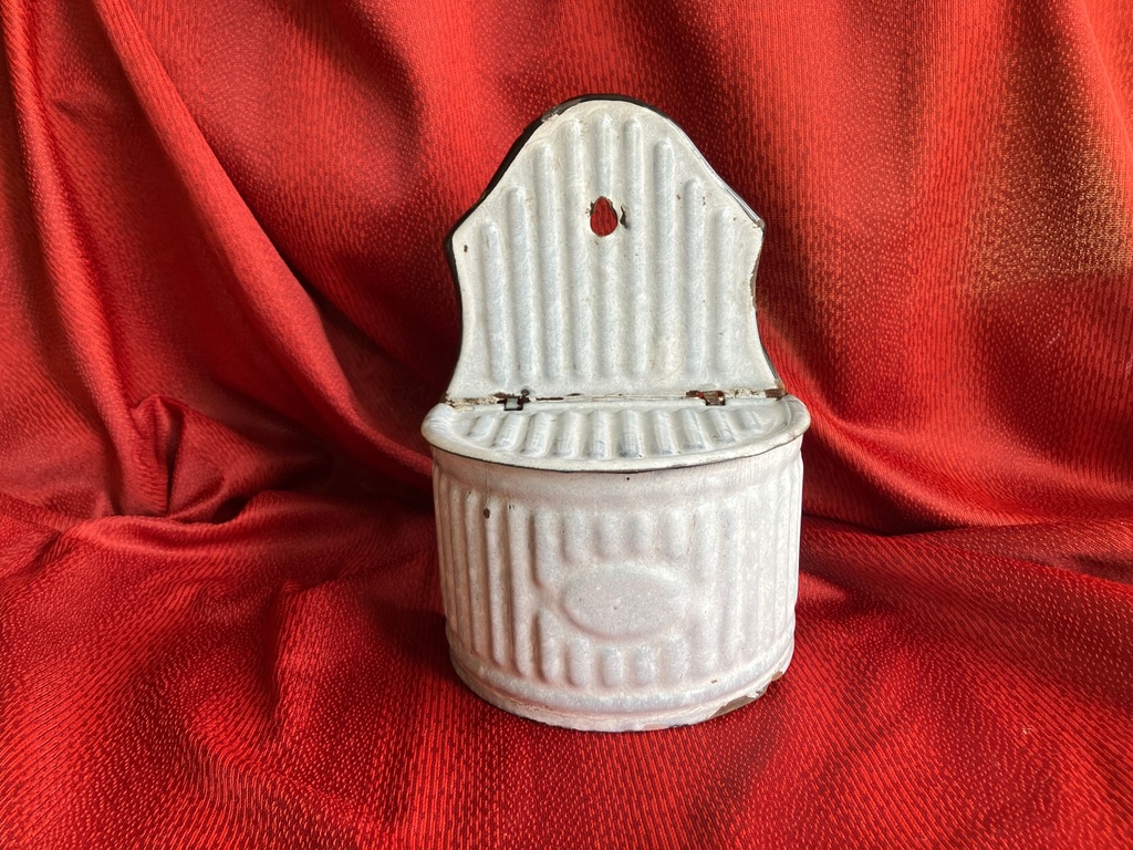 Solniczka produkcji Olkuskiej Fabryki Naczyń Emaliowanych. Stan jak na fot.