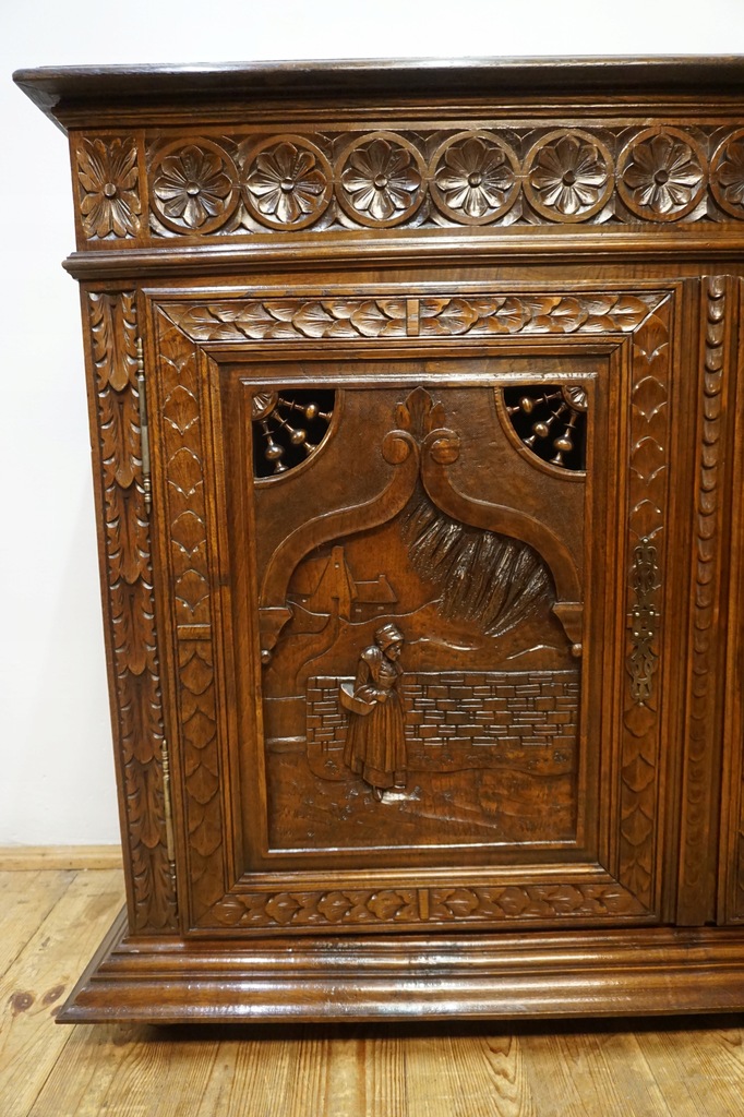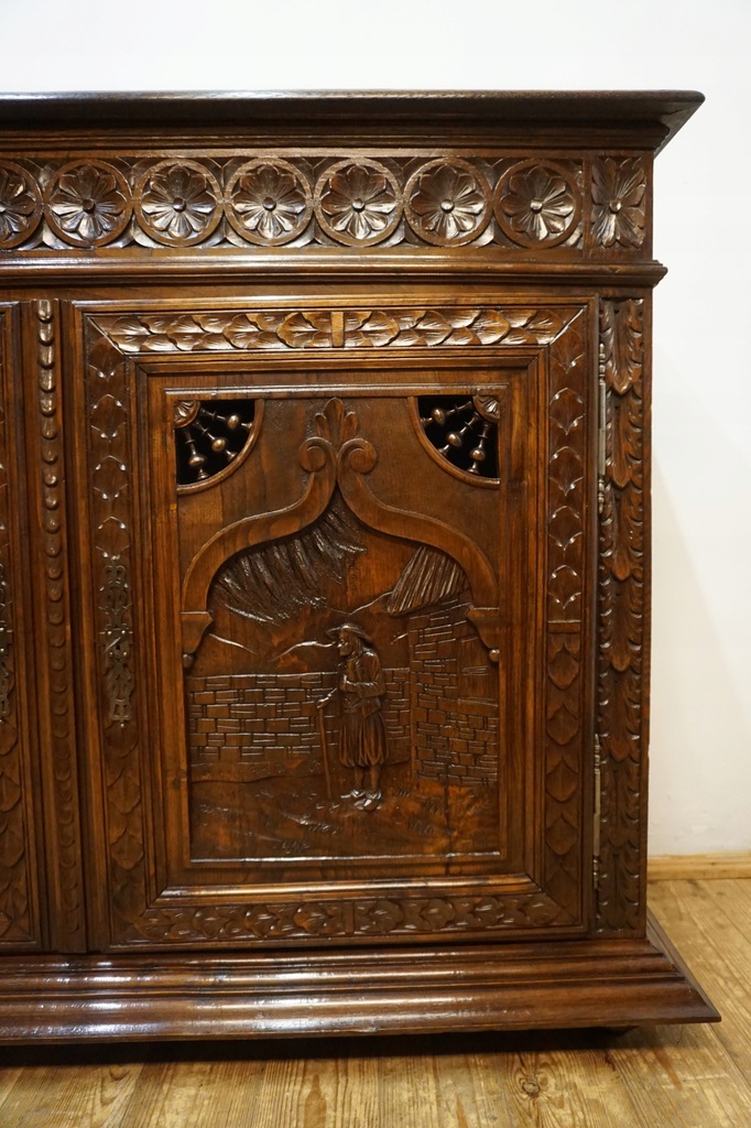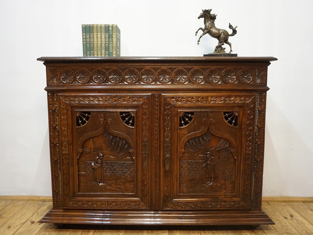 PIĘKNY CHARAKTERYSTYCZNY WYGLĄD,BOGATE RZEŹBIENIA NA DRZWIACH MEBLA, WSZYSTKO WYKONANE Z DBAŁOŚCIĄ O NAJMNIEJSZE DETALE,