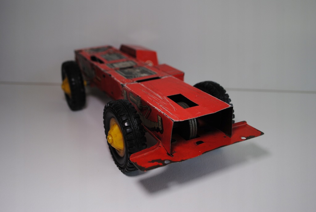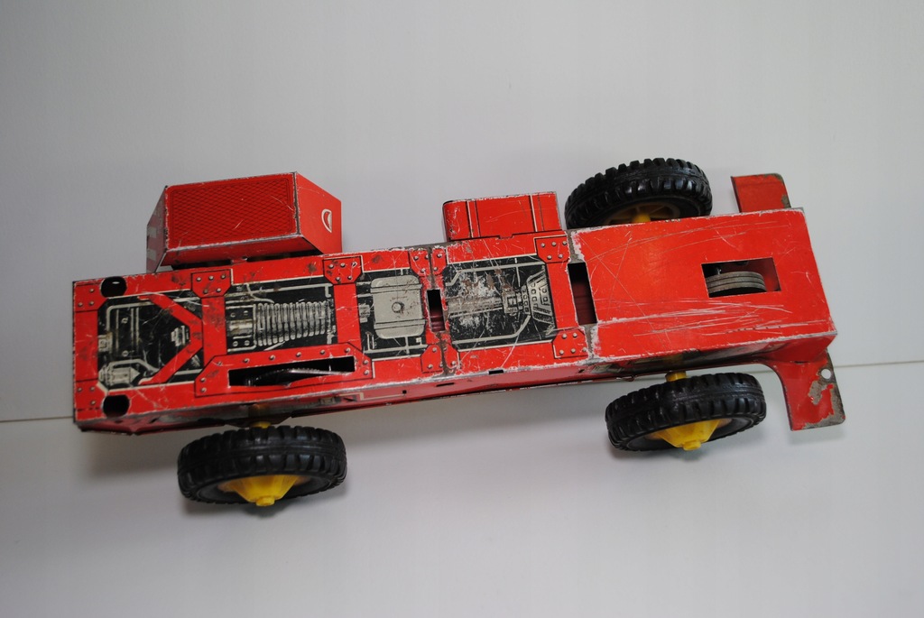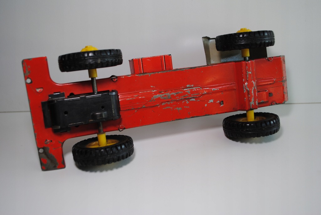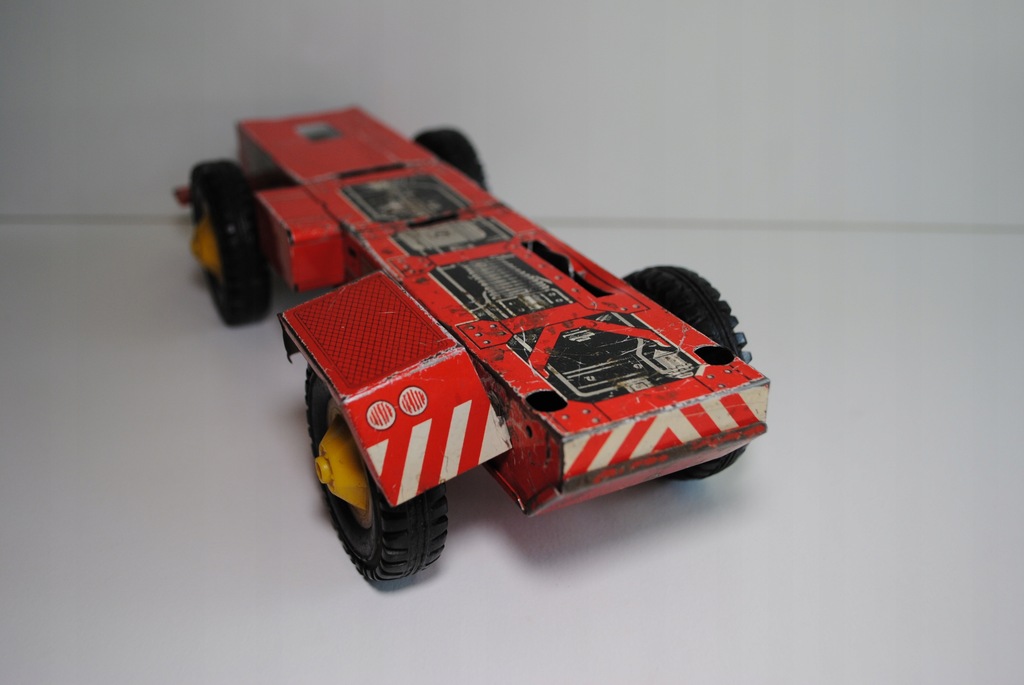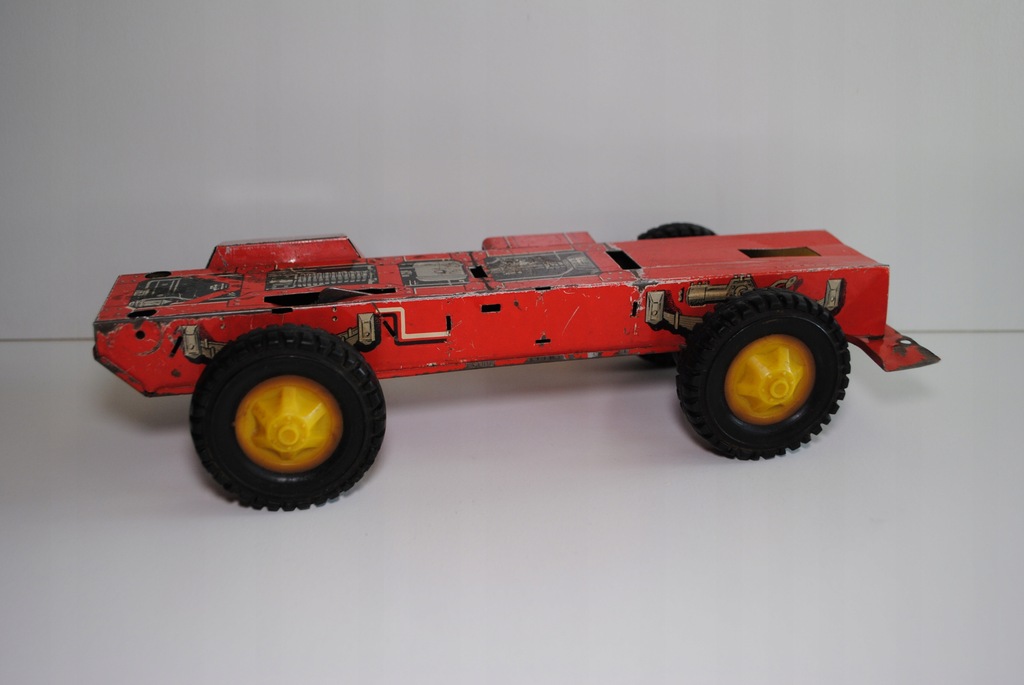 Przedmiotem licytacji jest blaszane podwozie wywrotki MAMMUT zabawka z czasów PRL, zabawka w stanie widocznym na załączonych fotkach. Opony gumowe.