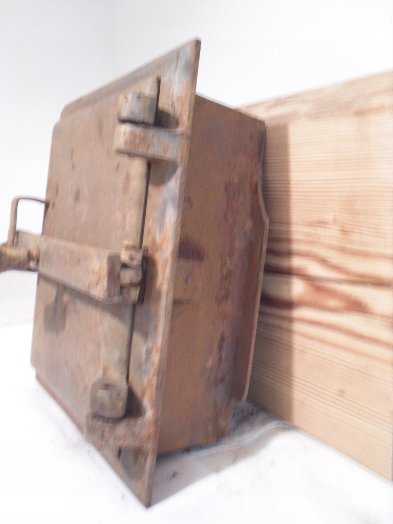 Witam na mojej aukcji. Na swoich aukcjach zazwyczaj oferuję Państwu przedmioty pochodzące z okresu PRL-u, tym razem do sprzedania piękne stare drzwiczki od/do pieca kaflowego, wędzarni czy grilla POJEDYNCZE. Bardzo ładne, drzwiczki całe kolor, a właściwie jego resztki to odcień złotego. Drzwiczki zostały lekko wyczyszczone ze starej powierzchownej rdzy i farby a także sadzy od strony wewnętrznej. Nie malowałem i nie zabezpieczałem żadnym tłustym preparatem, gdyż każdy kupujący ma jakąś swoja wizję dotyczącą malowania i koloru a tłuszcz utrudniłby przygotowanie do malowania. Kołnierz drzwiczek z tyłu lekko uszczerbiony, widać na zdjęciach, w niczym nie przeszkadza. Trzpienie mocujące drzwiczki posmarowałem smarem aby lekko się poruszały. Drzwiczki posiadają takrze wewnętrzne drzwiczki. Patrz zdjęcia.