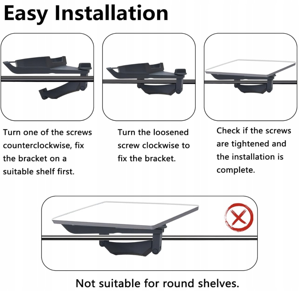 - Zapomnij o chwiejących się instalacjach! Ten uchwyt jest mocowany za pomocą dwóch solidnych śrub metalowych, co gwarantuje bardzo mocne i pewne mocowanie na poręczy.