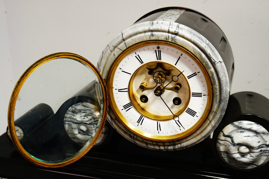 Stary Francuski Duży Zegar Kominkowy Marmurowy Marmur 64x34cm