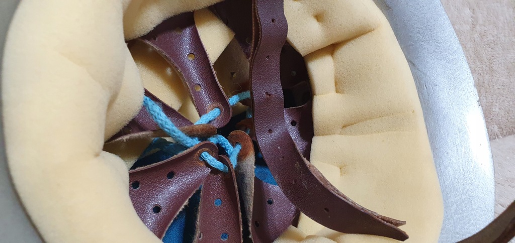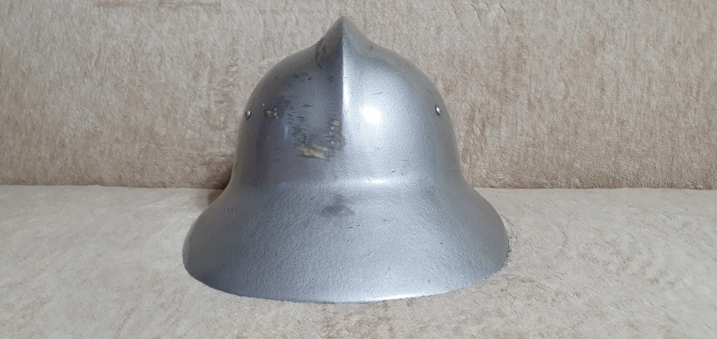 STARY KASK HEŁM STRAŻACKI TWORZYWO, WŁÓKNO O WYMIARACH 31/24 CM WYSOKOŚĆ 20 CM.