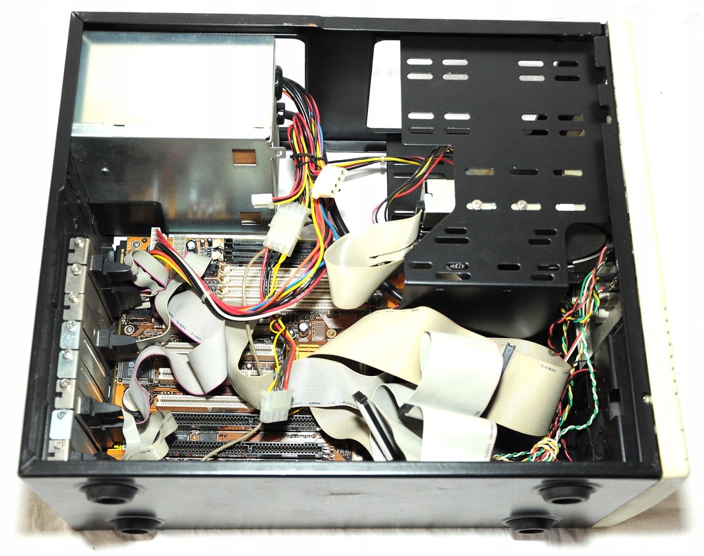 Oferuję na sprzedaż stary komputer widoczny na zdjęciach. Po podłączeniu do zasilania uruchamia się wentylator, na wyświetlaczu z przodu obudowy pojawia się napis 100, dalej nietestowany. Brak pamięci RAM, dysku, napędu CD, okablowania. Ze względu na powyższe sprzedaję jako niekompletny i uszkodzony z przeznaczeniem na części lub do naprawy.