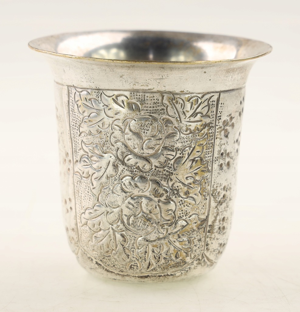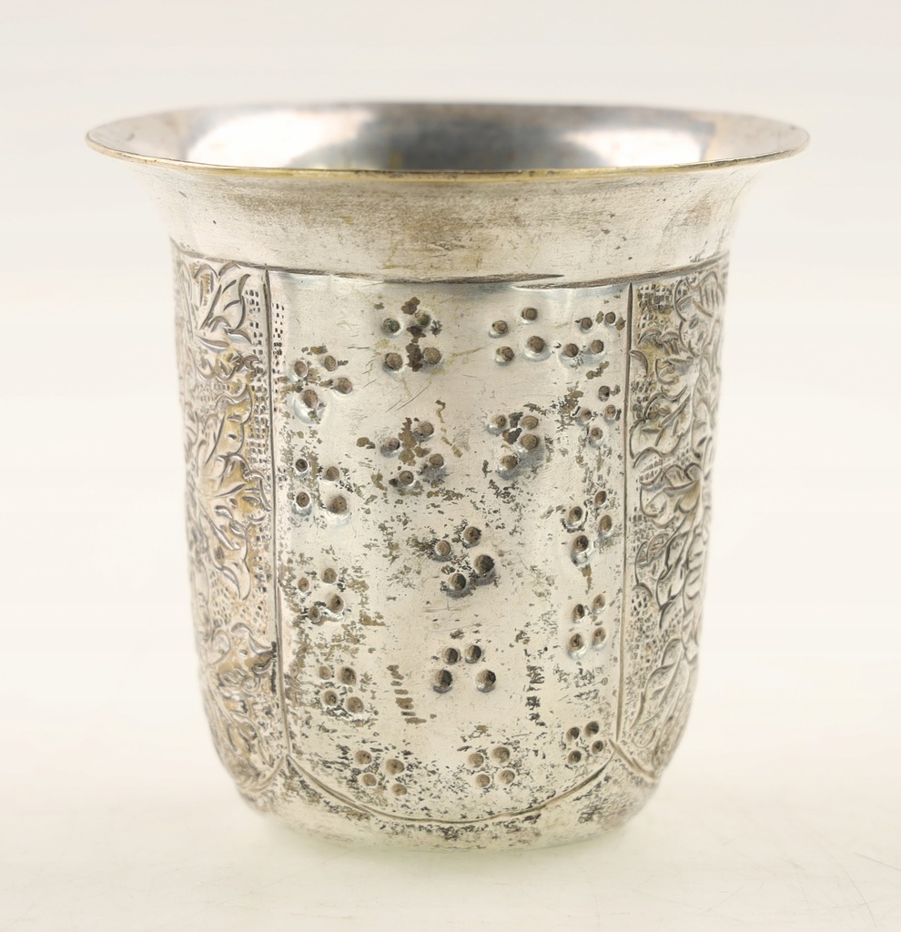 Platerowany, pięknie zdobiony kubek. Ślady użytkowania. Polecam kolekcjonerom
