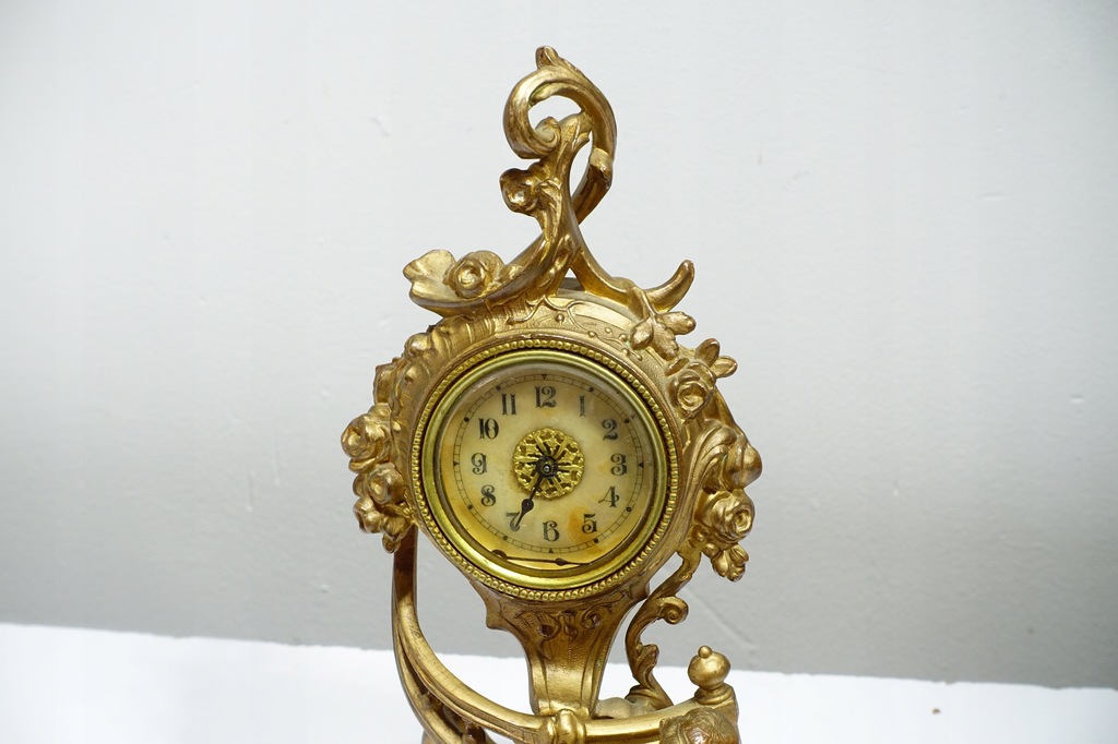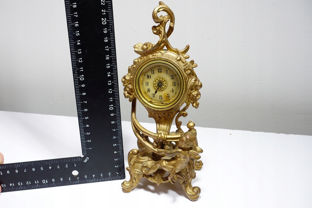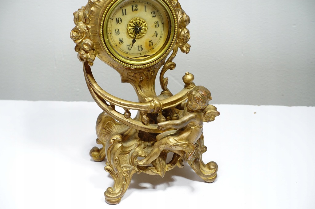 Stary Mosiężny Zegar Kominkowy Motyw z Aniołem 22cm