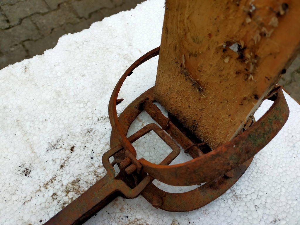 stary potrzask na grubego szkodnika sprezyna super mocna moim zdaniem brak zabezpieczenia (rozpreznika) stan jak na skanie bez ukrytych wad dlug.35 cm rozwartocs szczek 15 cm przedmiot wymaga znajomosci obslugitego typu i bhp sprzetu