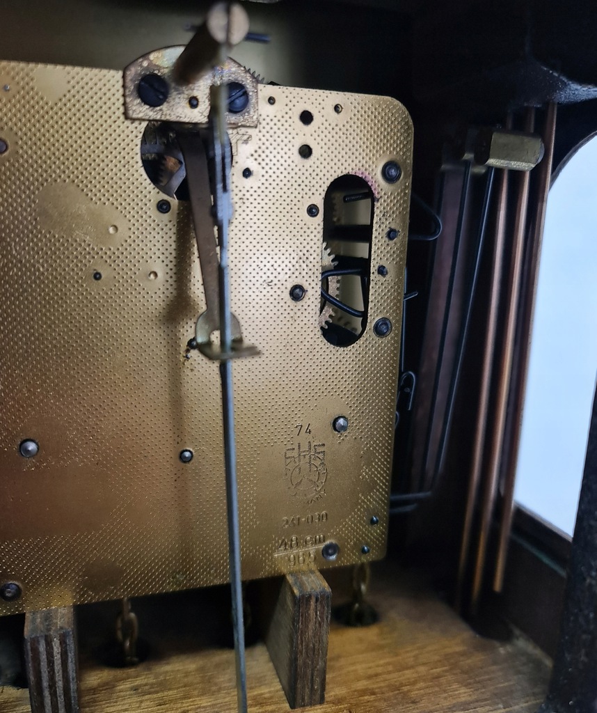 Gong 3 strunowy, wybija połówki jak i równowartość godzin.