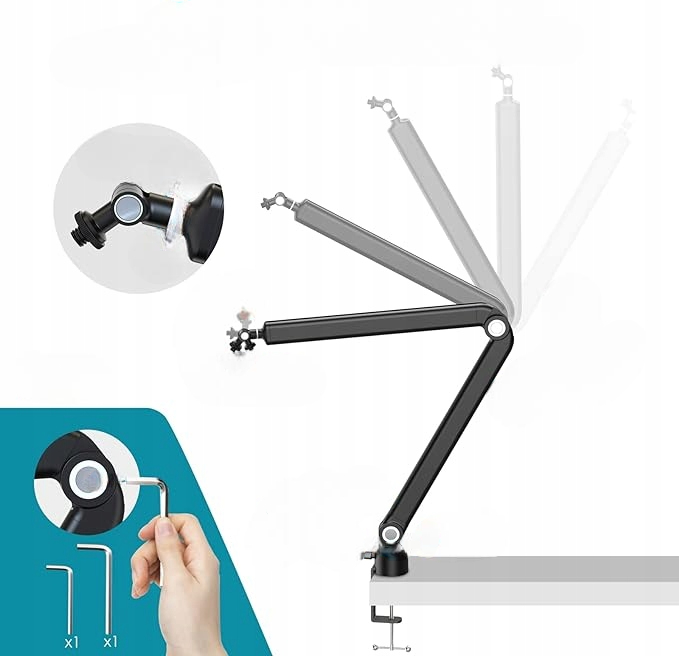 - Elastyczne, regulowane ramię mikrofonu — przedłużony stojak na ramię mikrofonu zapewnia maksymalną odległość w poziomie/pionie 32"/80 cm i pełny obrót o 360°. Ulepszony stojak na ramię wysięgnika ma 5 swobodnie regulowanych przegubów, szerszy zakres kątów regulacji, aby spełnić wszystkie Twoje wymagania potrzeby kątowe.