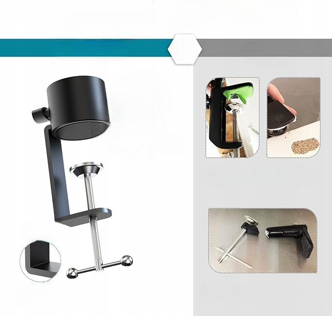 - Ulepszona konstrukcja — dodano obrotową konstrukcję o 360° na górze wysięgnika mikrofonu, a zakres regulacji na dole stojaka zwiększono do 180°, dzięki czemu można ustawić mikrofon pod preferowanym kątem. W odróżnieniu od metalowych klipsów do montażu na biurku stosowanych w tradycyjnych konstrukcjach nośnych, nie zsuwa się ani nie pęka. Ukryty dostęp przewodowy sprawia, że miejsce pracy jest czyste i stylowe. Wysokiej jakości, całkowicie metalowa konstrukcja odporna na skręcanie, długotrwałe użytkowanie nie rdzewieje ani nie powoduje nienormalnego hałasu.