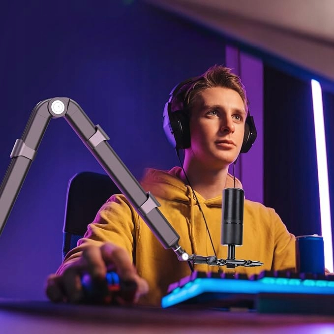 - Wysokiej jakości stojak na wysięgnik mikrofonu o dużej wytrzymałości — wyważone ramię mikrofonu zapewnia standardowe obciążenie do 1,8 kg/4 funtów, a mikrofon USB można ustawić pod dowolnym kątem. Żadnego uginania się, po prostu solidny jak skała.