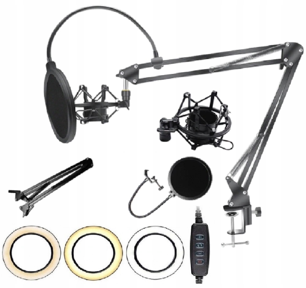 - Dobrej jakości uchwyt na mikrofon wykonany z metalu oraz plastiku,