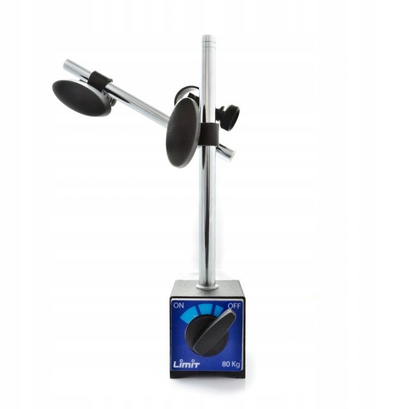 Z dokładną regulacją ustawienia. Z podstawą magnetyczną. Magnetyczne są ściany boczne i płaszczyzna podstawy. Przyciąganie włącza się i wyłącza dźwignią przełącznika. Regulacja ustawienia góra-dół i na boki. Dostarczany z oprawkami górną i dolną, ale bez czujnika.