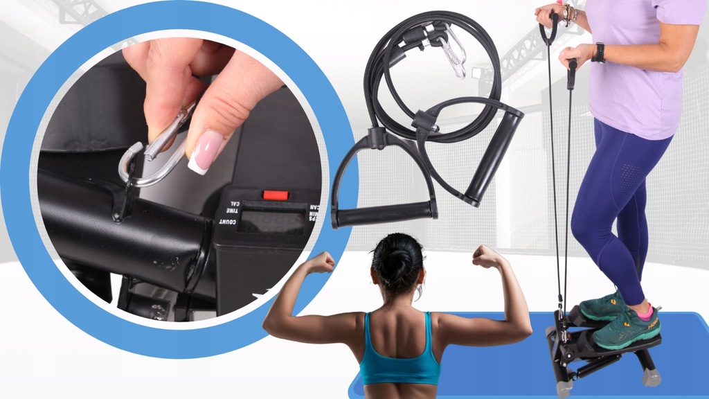 - ✅Idealny do ćwiczeń górnych partii mięśniowych - dzięki możliwości przypięcia taśm oporowych do stepera ćwicząc wzmocnisz górne partie ciała