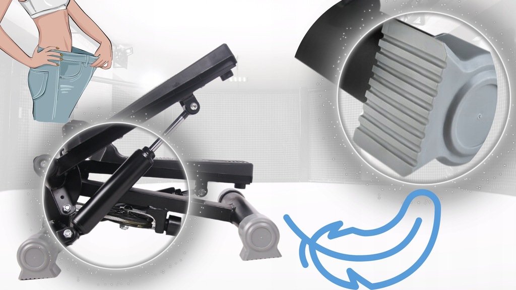 - ✅antypoślizgowe podkładki - umożliwiają ustawienie stepera na każdej nawierzchni bez obaw o jej uszkodzenie