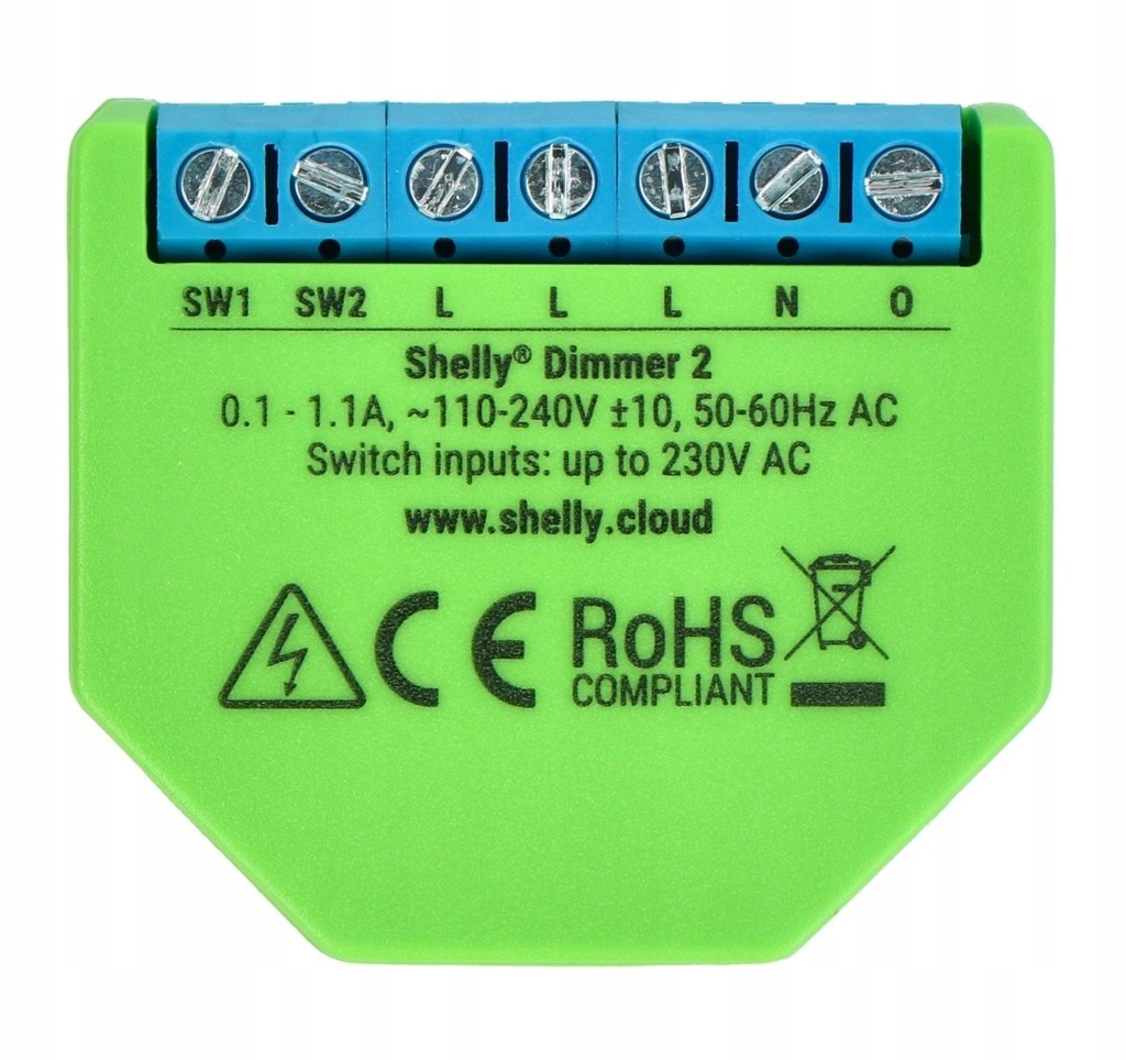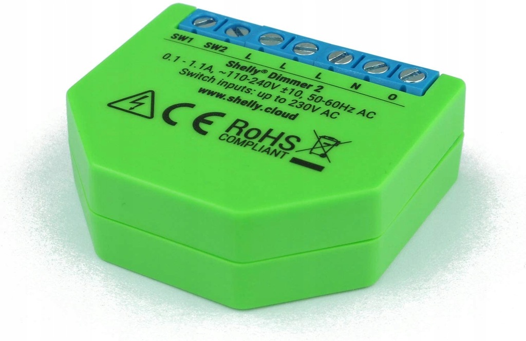 Gotowy do użycia, niewielki moduł Shelly Dimmer 2, który pozwala na sterowanie oświetleniem. Za jego pomocą można włączać / wyłączać światło, a także sterować jego jasnością. Współpracuje z urządzeniami 230 V o mocy od 10 W do 200 W. Sterownik posiada wbudowaną funkcję pomiaru poboru energii. Komunikuje się poprzez sieć WiFi z wykorzystaniem dedykowanej aplikacji.