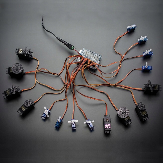 Precyzyjny, 12-bitowy generator sygnału PWM. Umożliwia sterowanie aż 16-nastoma serwomechanizmami. Do komunikacji wykorzystuje tylko dwie linie interfejsu I2C. Dzięki możliwości wyboru adresów (0x60-0x80), na jednej magistrali można podłączyć 62 urządzenia, co daje 992 kanały PWM obsługiwane przez jeden mikrokontroler.