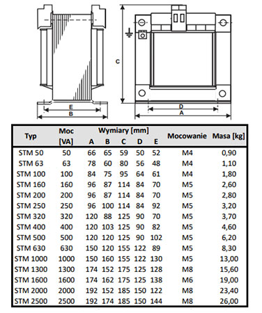 - Nowoczesne, ekonomiczne wykonanie transformatora ogólnego stosowania, do wbudowania w instalacjach i urządzeniach przemysłowych lub elektroenergetycznych