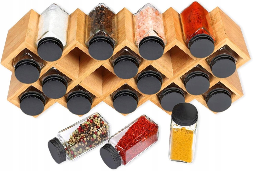 Dzięki 18 szklanym słoikom, które są wykonane z grubego i trwałego szkła, możesz trzymać wszystkie swoje ulubione przyprawy w jednym miejscu, co ułatwi Ci korzystanie z nich podczas gotowania. Słoiki są łatwe w czyszczeniu i mają przezroczyste ścianki, co umożliwia łatwe zobaczenie zawartości i ułatwia znalezienie potrzebnej przyprawy.