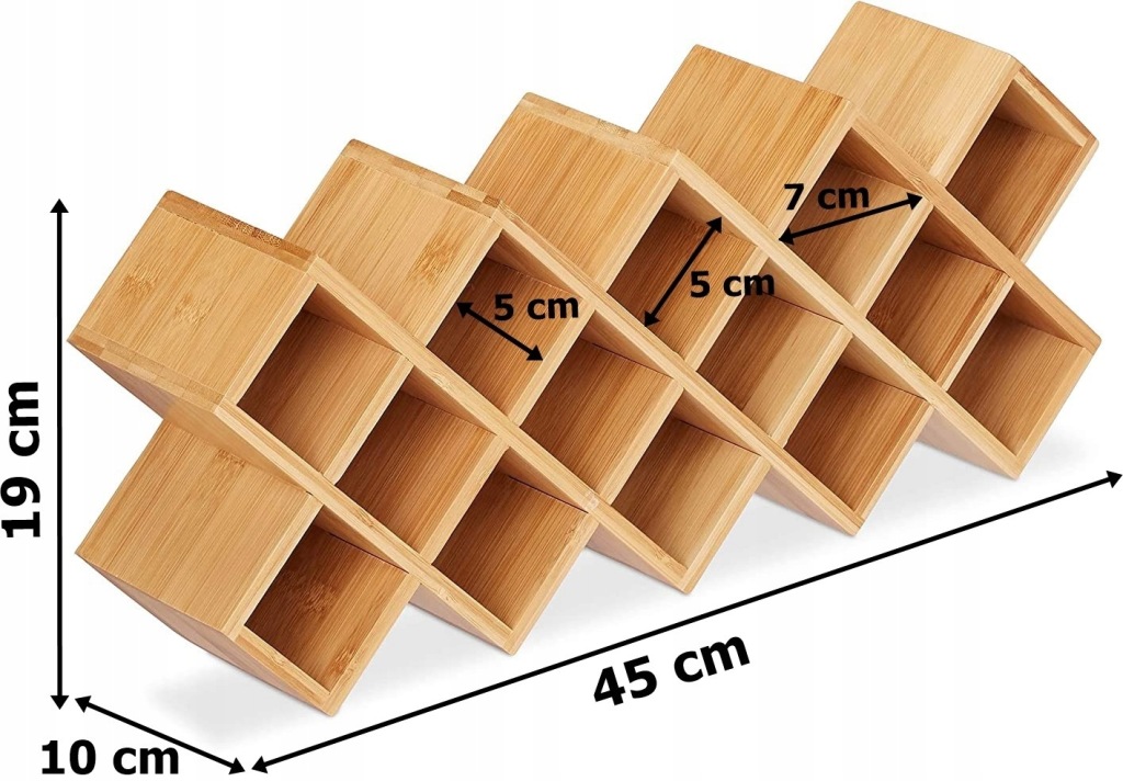 Stojak bambusowy na przyprawy Kochen posiada wiele możliwości ustawienia - można go postawić pionowo lub poziomo, co umożliwia dostosowanie go do różnych miejsc w kuchni. Ponadto, stojak może być łatwo włożony do szuflady, co pozwala zaoszczędzić miejsce na blacie kuchennym.