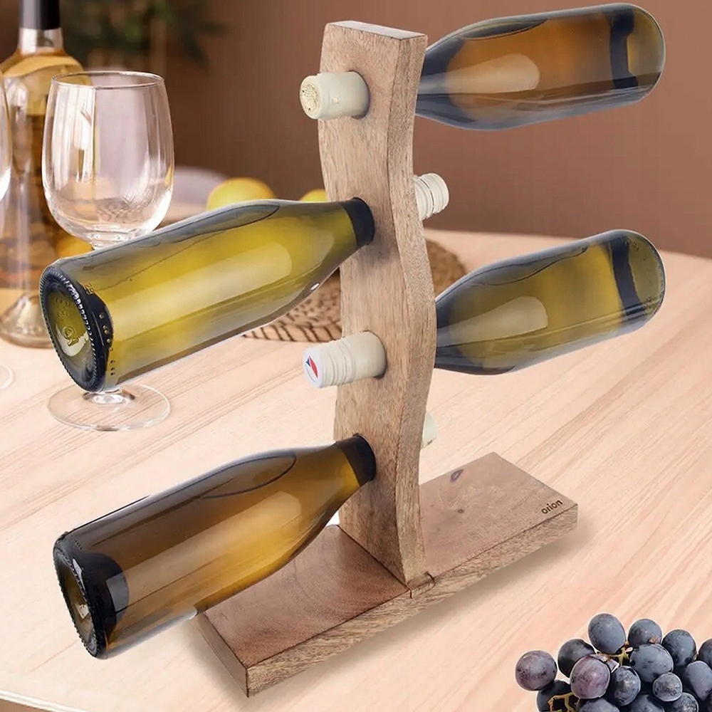 ✅ Stojak na 4 butelki wina - Efektowny stojak na 4 butelki wina z serii Mango. Stojak ma wymiar 30,5 x 10 x 39,5 cm. Stojak posiada otwory o średnicy 3 cm, które są dopasowane do większości standardowych butelek wina, zapewniając ich stabilne i bezpieczne przechowywanie.