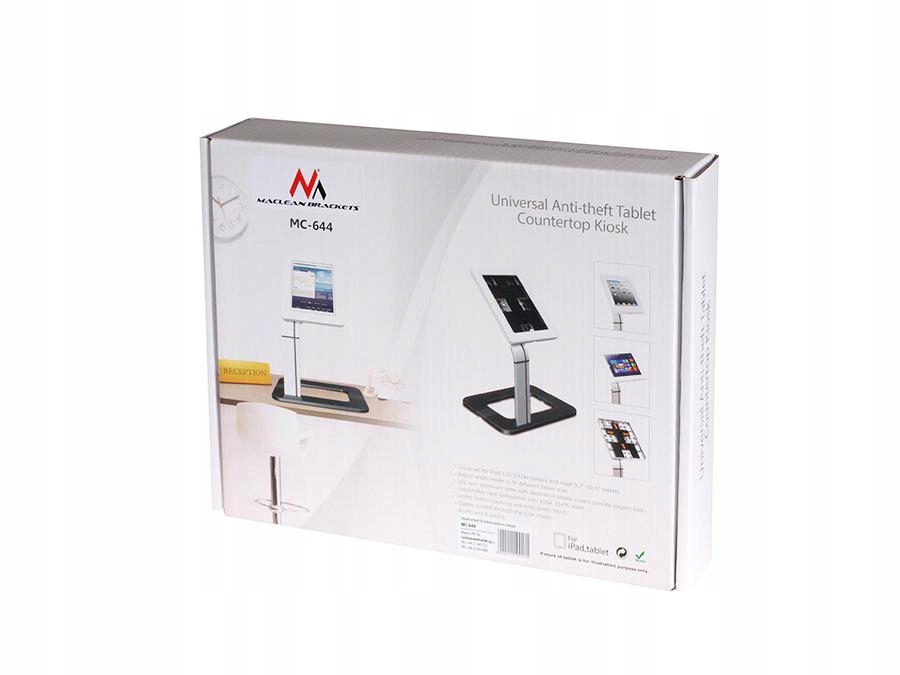 Stojak na tablet MC-644 jest uchwytem uniwersalnym i powinien pasować do większości tabletów o wymiarach od 198 x 120 x 7.6 mm do 258 x 188 x 10.5 mm. Uchwyt jest w pełni kompatybilny z iPad 1/2/3/4/Air, Galaxy TAB, Goclever.