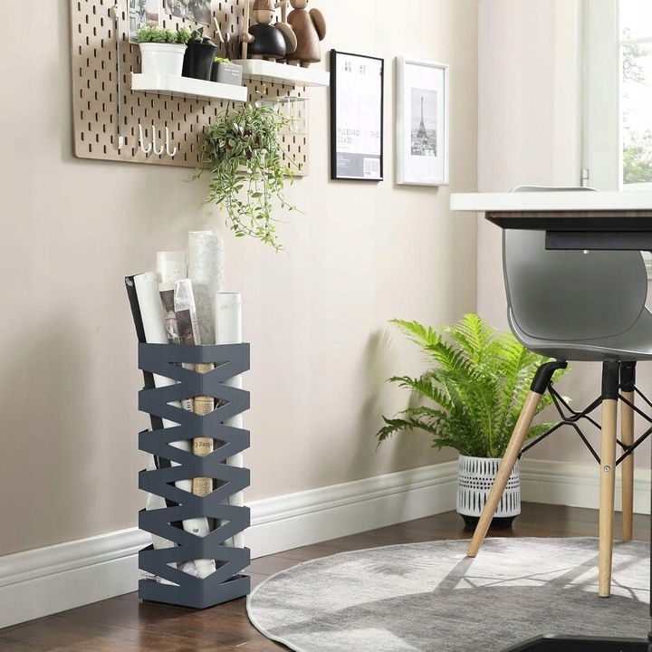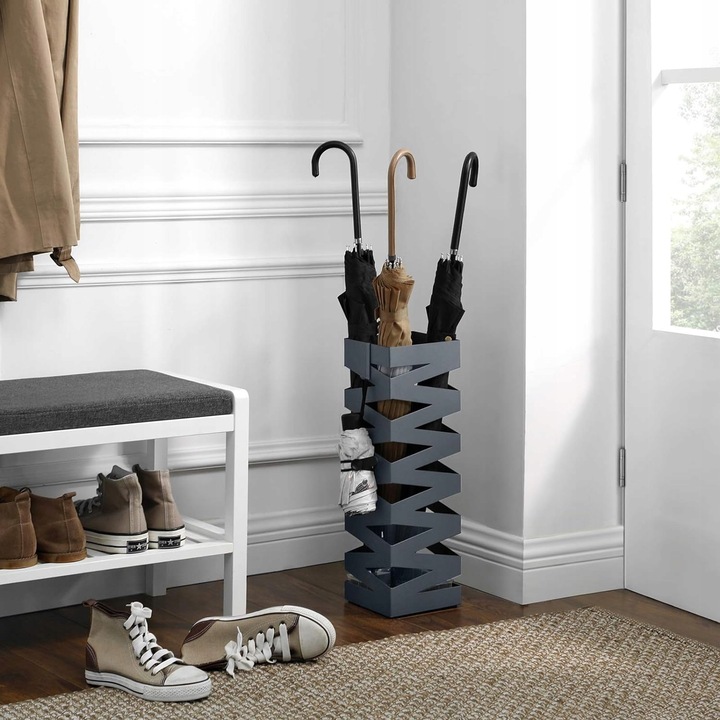 To elegancki i funkcjonalny dodatek do Twojego wnętrza. Służy do przechowywania parasoli, zarówno mokrych, jak i suchych, zapewniając porządek w korytarzu, czy przedpokoju. Dzięki specjalnej tacce ociekowej, woda spływająca z parasoli nie zniszczy podłogi, co znacznie ułatwia utrzymanie czystości. Stojak wyposażony jest w dodatkowe haczyki do zawieszenia złożonych parasoli, co zapobiega ich zagubieniu i ułatwia codzienne użytkowanie. Dzięki solidnej konstrukcji z grubej blachy oraz estetycznemu wykończeniu, parasolnik nie tylko pełni funkcję praktyczną, ale również dekoracyjną, dodając elegancji każdemu pomieszczeniu.