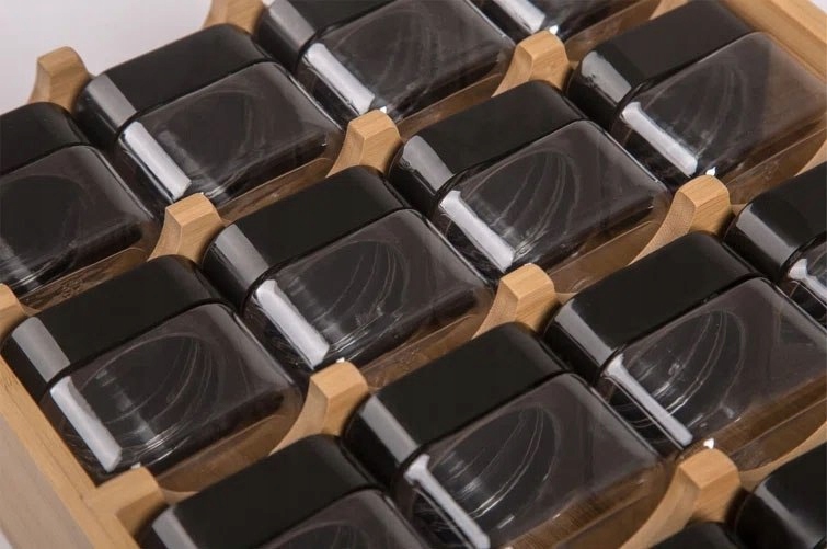 ✅Kompletny Zestaw: W zestawie znajdziesz 16 eleganckich pojemników na przyprawy, które idealnie komponują się ze stojakiem.